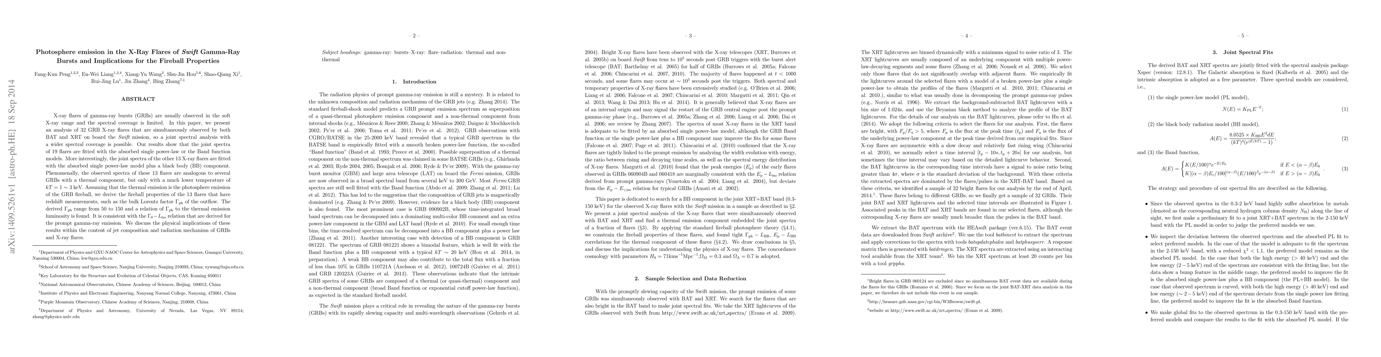 This paper analyzes X-ray flares from 32 gamma-ray bursts (GRBs) observed by Swift, finding that 13 flares exhibit a thermal component analogous to photosphere emission. The derived bulk Lorentz factors of the outflow range from 50 to 150, supporting a relation between the thermal emission luminosity and the Lorentz factor consistent with the prompt gamma-ray emission.