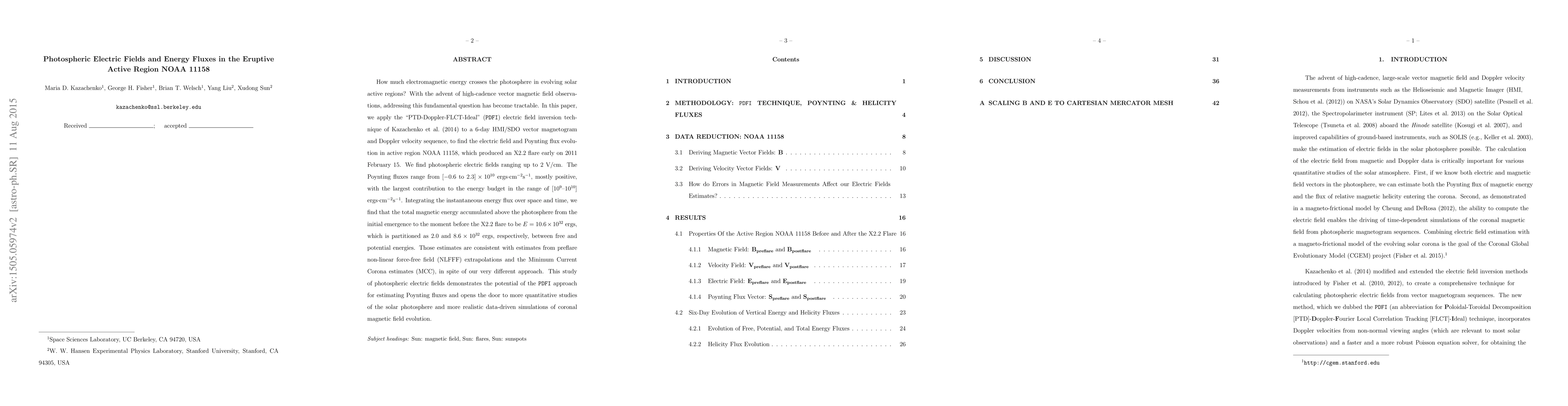This paper investigates the electromagnetic energy crossing the photosphere in active region NOAA 11158 using the PDFI electric field technique, revealing electric fields up to 2 V/cm and Poynting fluxes ranging from -0.6 to 2.3 x 10^10 ergs·cm^-2·s^-1, with significant energy contributions in the range of 10^9–10^10 ergs·cm^-2·s^-1.