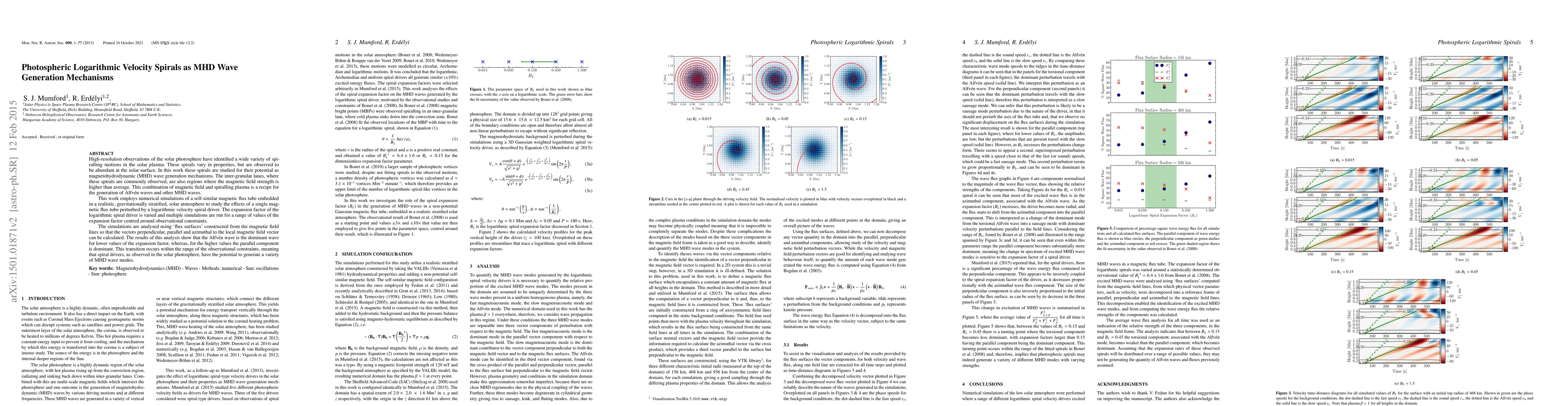 This paper investigates the generation of magnetohydrodynamic (MHD) waves by photospheric logarithmic velocity spirals, finding that Alfv\'en waves dominate for lower spiral expansion factors, while higher factors lead to a dominant parallel component. Numerical simulations of a magnetic flux tube show these spirals can generate a variety of MHD wave modes.