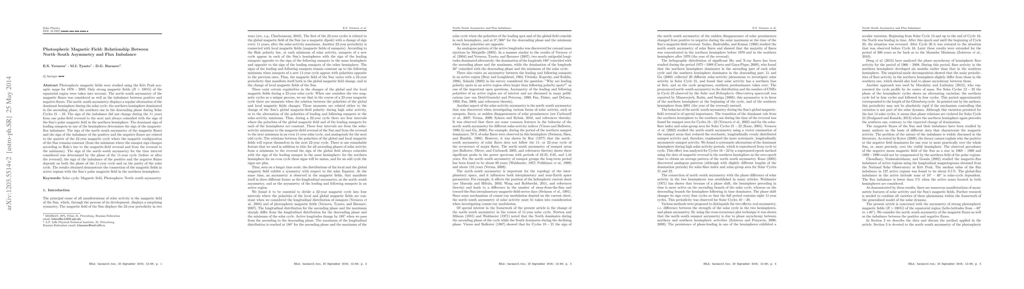 This study investigates the north-south asymmetry of photospheric magnetic fields and flux imbalance using Kitt Peak synoptic maps from 1976-2003. It finds a regular alternation in the dominant hemisphere during the solar cycle, with the northern hemisphere leading in the ascending phase and the southern in the descending phase. The sign of the flux imbalance correlates with the Sun's polar magnetic field and the phase of the 11-year cycle.