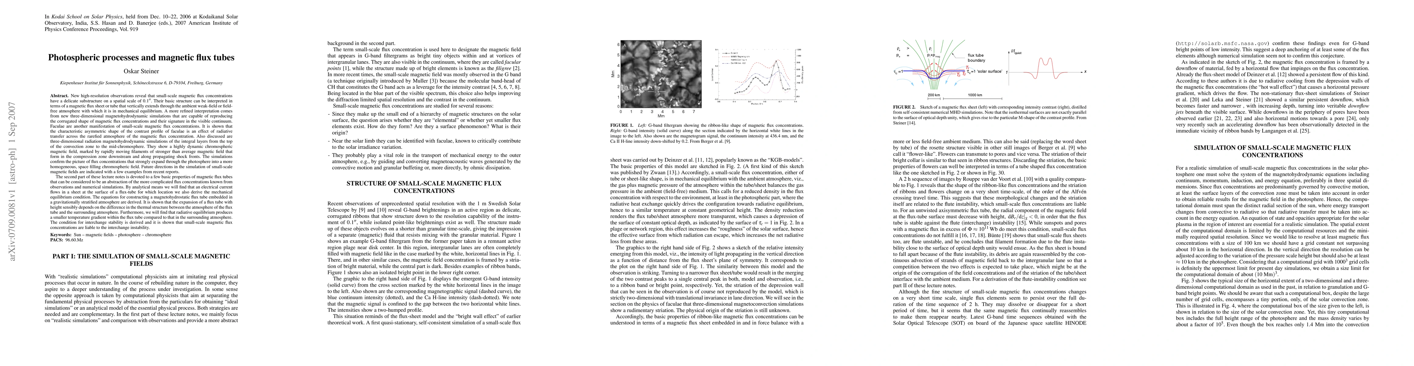 In the first part of these lecture notes, new high-resolution observations of small-scale magnetic flux concentrations are presented and compared to results from new three-dimensional magnetohydrodynamic simulations. Special attention is paid to the physics of faculae and to new three-dimensional radiation magnetohydrodynamic simulations of the integral layers from the top of the convection zone to the mid-chromosphere. The second part is devoted to a few basic properties of magnetic flux tubes, which can be considered to be an abstraction of the more complicated flux concentrations known from observations and numerical simulations. We treat electrical current sheets, the mechanical equilibrium condition at magnetic interfaces, the equations for constructing a magnetohydrostatic flux tube embedded in a gravitationally stratified atmosphere, the condition of radiative equilibrium, and the condition for interchange stability.