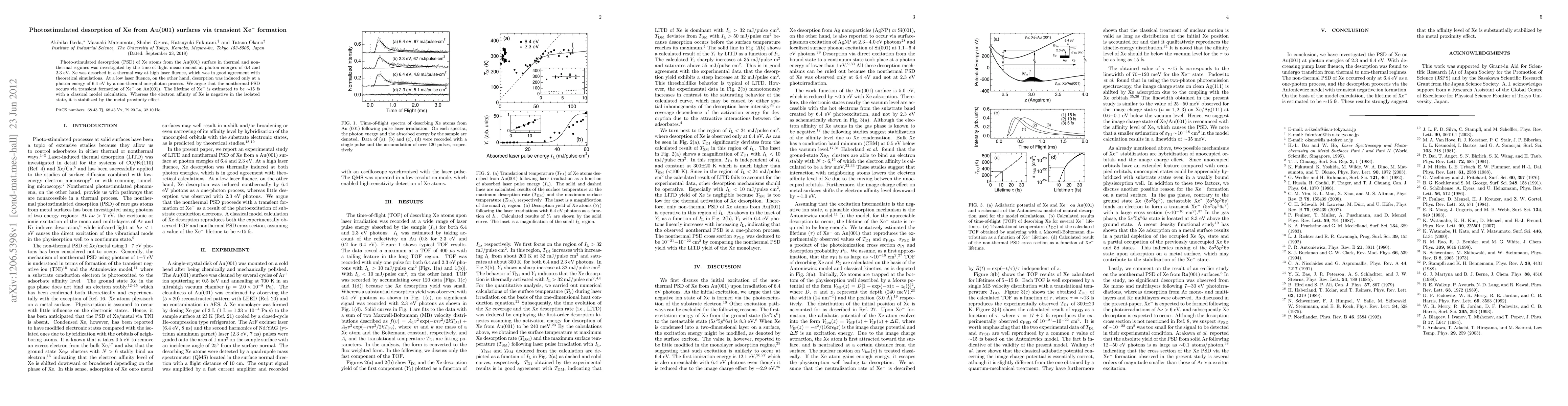 This paper investigates the photo-stimulated desorption of Xe from Au(001) surfaces, finding that high laser fluence induces thermal desorption, while low fluence at 6.4 eV triggers non-thermal desorption via transient Xe- formation, with a ~15 fs lifetime. The metal proximity effect stabilizes Xe- despite its negative electron affinity in isolation.