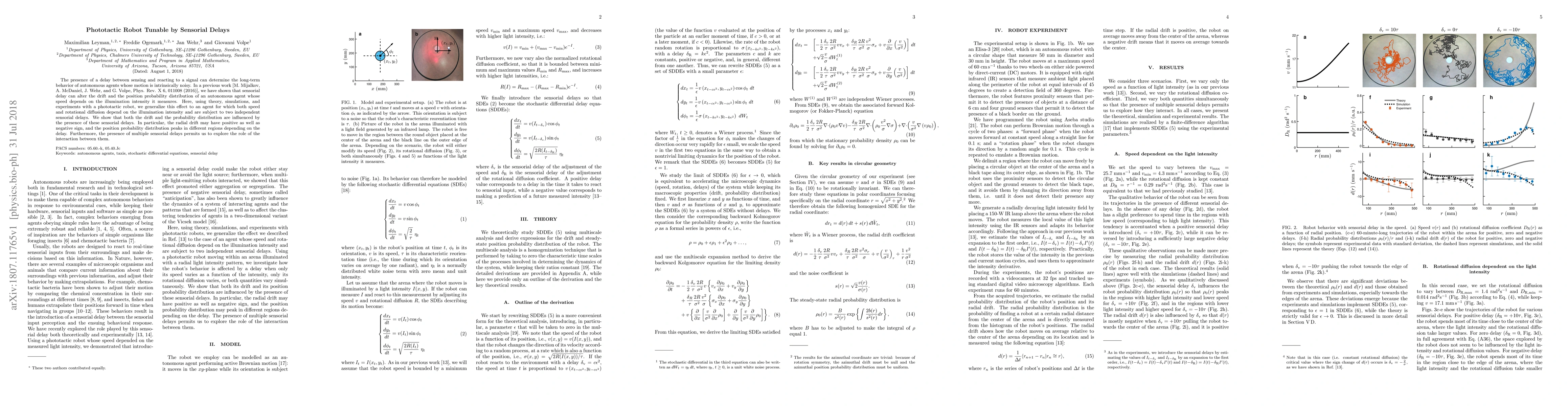 The presence of a delay between sensing and reacting to a signal can determine the long-term behavior of autonomous agents whose motion is intrinsically noisy. In a previous work [M. Mijalkov, A. McDaniel, J. Wehr, and G. Volpe, Phys. Rev. X 6, 011008 (2016)], we have shown that sensorial delay can alter the drift and the position probability distribution of an autonomous agent whose speed depends on the illumination intensity it measures. Here, using theory, simulations, and experiments with a phototactic robot, we generalize this effect to an agent for which both speed and rotational diffusion depend on the illumination intensity and are subject to two independent sensorial delays. We show that both the drift and the probability distribution are influenced by the presence of these sensorial delays. In particular, the radial drift may have positive as well as negative sign, and the position probability distribution peaks in different regions depending on the delay. Furthermore, the presence of multiple sensorial delays permits us to explore the role of the interaction between them.