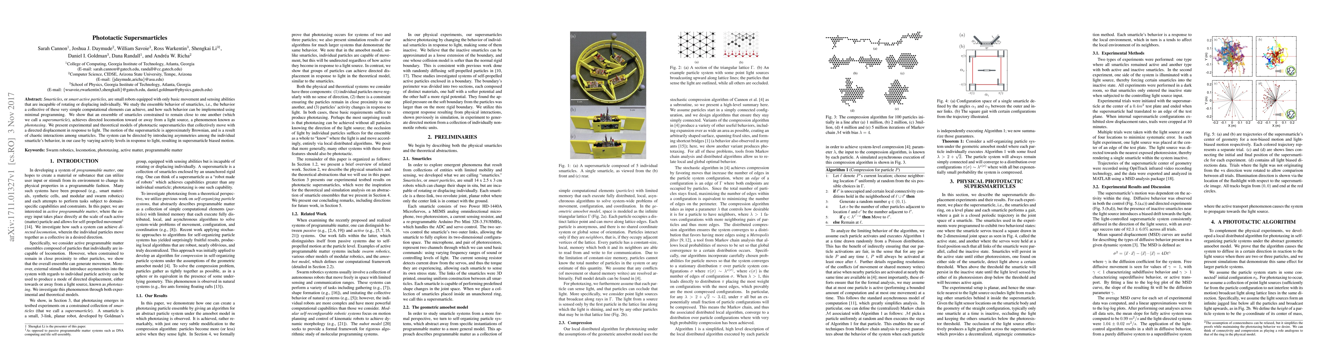 Smarticles, or smart active particles, are small robots equipped with only basic movement and sensing abilities that are incapable of rotating or displacing individually. We study the ensemble behavior of smarticles, i.e., the behavior a collective of these very simple computational elements can achieve, and how such behavior can be implemented using minimal programming. We show that an ensemble of smarticles constrained to remain close to one another (which we call a supersmarticle), achieves directed locomotion toward or away from a light source, a phenomenon known as phototaxing. We present experimental and theoretical models of phototactic supersmarticles that collectively move with a directed displacement in response to light. The motion of the supersmarticle is approximately Brownian, and is a result of chaotic interactions among smarticles. The system can be directed by introducing asymmetries among the individual smarticle's behavior, in our case by varying activity levels in response to light, resulting in supersmarticle biased motion.