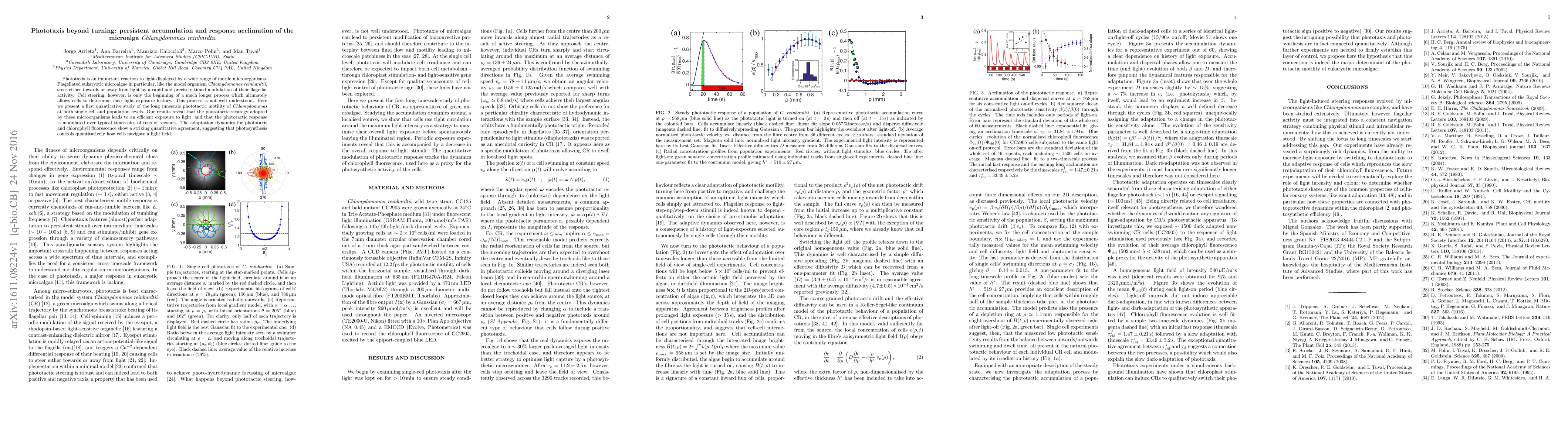 Phototaxis is an important reaction to light displayed by a wide range of motile microorganisms. Flagellated eukaryotic microalgae in particular, like the model organism Chlamydomonas reinhardtii, steer either towards or away from light by a rapid and precisely timed modulation of their flagellar activity. Cell steering, however, is only the beginning of a much longer process which ultimately allows cells to determine their light exposure history. This process is not well understood. Here we present a first quantitative study of the long timescale phototactic motility of Chlamydomonas at both single cell and population levels. Our results reveal that the phototactic strategy adopted by these microorganisms leads to an efficient exposure to light, and that the phototactic response is modulated over typical timescales of tens of seconds. The adaptation dynamics for phototaxis and chlorophyll fluorescence show a striking quantitative agreement, suggesting that photosynthesis controls quantitatively how cells navigate a light field.
