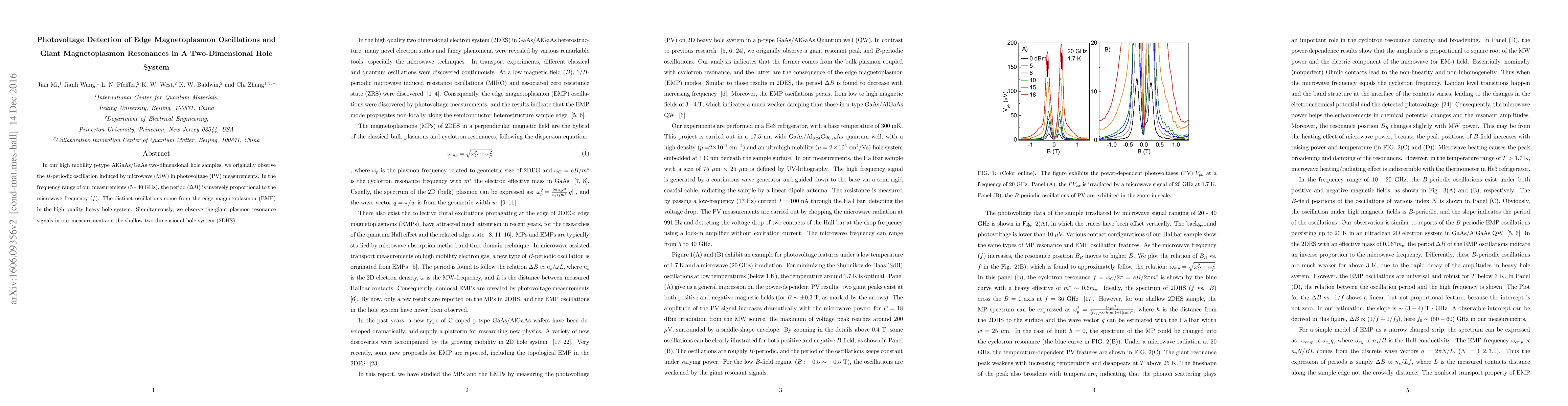 Researchers observe edge magnetoplasmon oscillations and giant magnetoplasmon resonances in a 2D hole system using photovoltage measurements, revealing unique behavior under high magnetic fields.