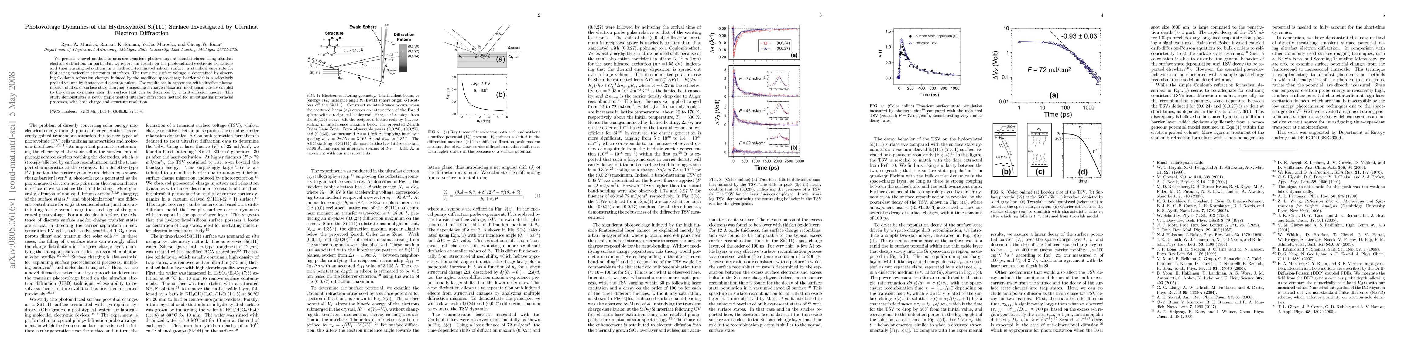 This paper introduces a novel ultrafast electron diffraction technique to measure transient photovoltage at nanointerfaces, specifically on hydroxyl-terminated Si(111) surfaces. The study reveals photoinduced electronic excitations and their relaxations, showing a charge relaxation mechanism linked to carrier dynamics near the surface, described by a drift-diffusion model.