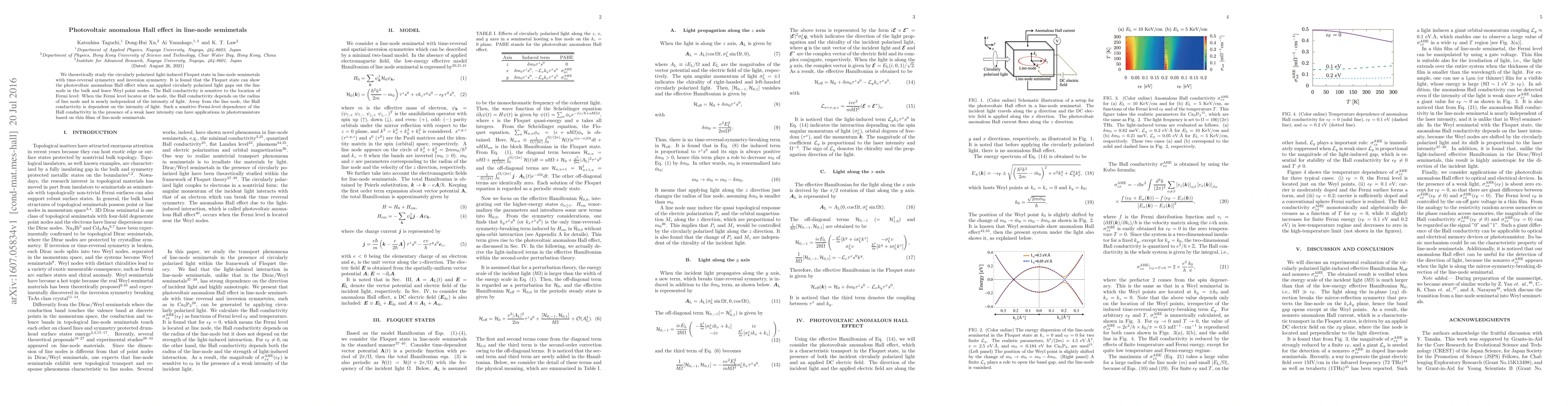The research theoretically investigates photovoltaic anomalous Hall effect in line-node semimetals under circularly polarized light, revealing a dependence of Hall conductivity on both the Fermi level's position relative to the line node and the light's intensity, with potential applications in phototransistors.