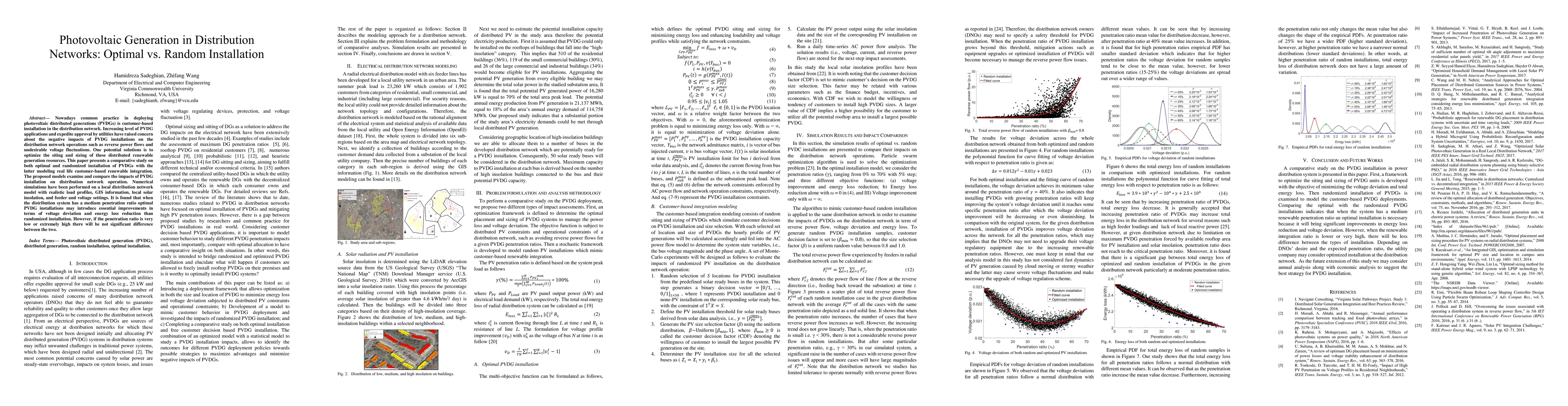 Nowadays common practice in deploying photovoltaic distributed generations (PVDGs) is customer-based installation in the distribution network. Increasing level of PVDG applications and expedite approval by utilities have raised concern about the negative impacts of PVDG installations on the distribution network operations such as reverse power flows and undesirable voltage fluctuations. One potential solutions is to optimize the siting and sizing of these distributed renewable generation resources. This paper presents a comparative study on both optimal and randomized installation of PVDGs with the latter modeling real life customer-based renewable integration. The proposed models examine and compare the impacts of PVDG installation on distribution network operation. Numerical simulations have been performed on a local distribution network model with realistic load profiles, GIS information, local solar insolation, and feeder and voltage settings. It is found that when the distribution system has a medium penetration ratio optimal PVDG installations may introduce essential improvements in terms of voltage deviation and energy loss reduction than randomized installation. However, if the penetration ratio is very low or extremely high there will be not significant difference between the two.