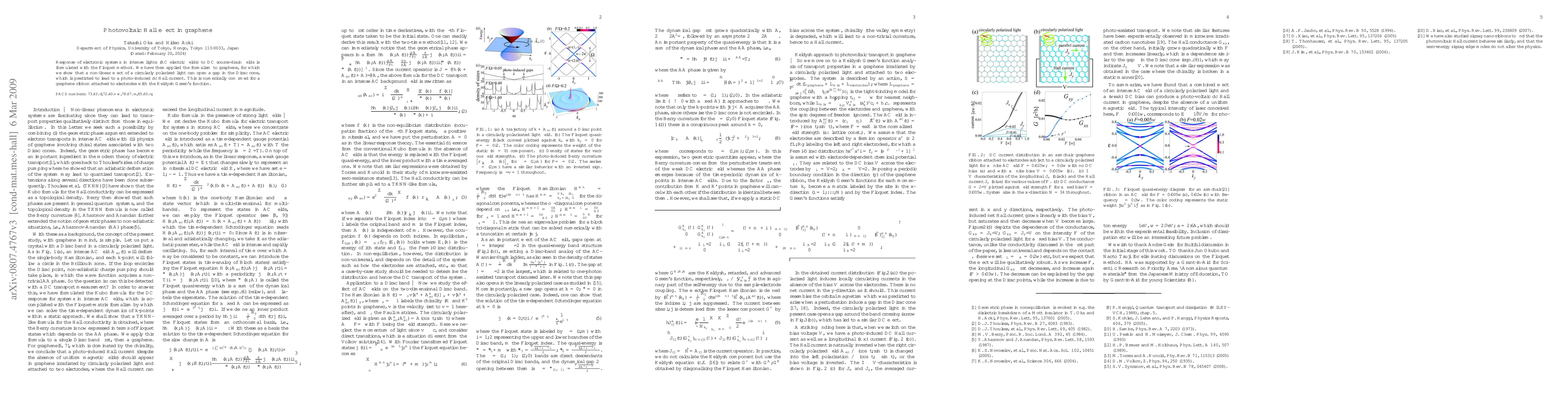 Response of electronic systems in intense lights (AC electric fields) to DC source-drain fields is formulated with the Floquet method. We have then applied the formalism to graphene, for which we show that a non-linear effect of a circularly polarized light can open a gap in the Dirac cone, which leads to a photo-induced dc Hall current. This is numerically confirmed for a graphene ribbon attached to electrodes with the Keldysh Green's function.
