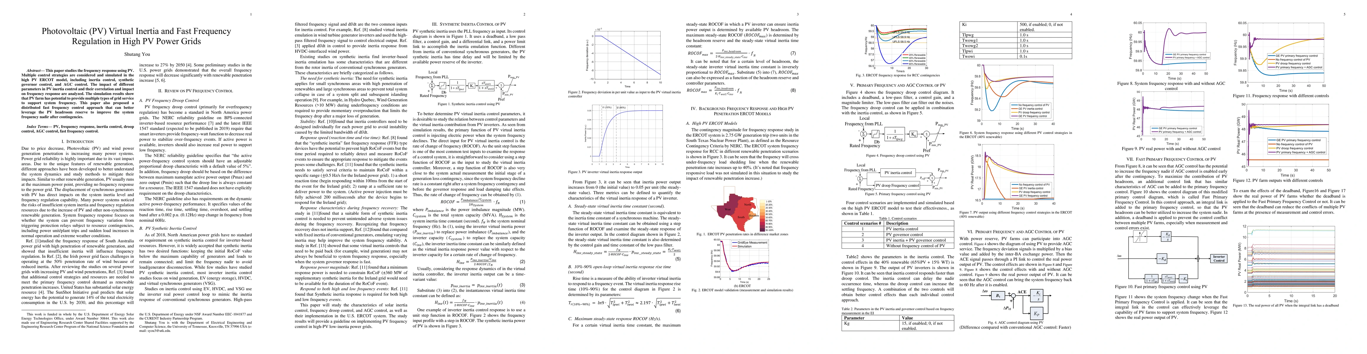 This paper investigates the frequency response capabilities of photovoltaic (PV) farms in high PV power grids, analyzing various control strategies and their impact on grid stability. It proposes a distributed fast frequency control method to enhance system frequency recovery post-contingency.