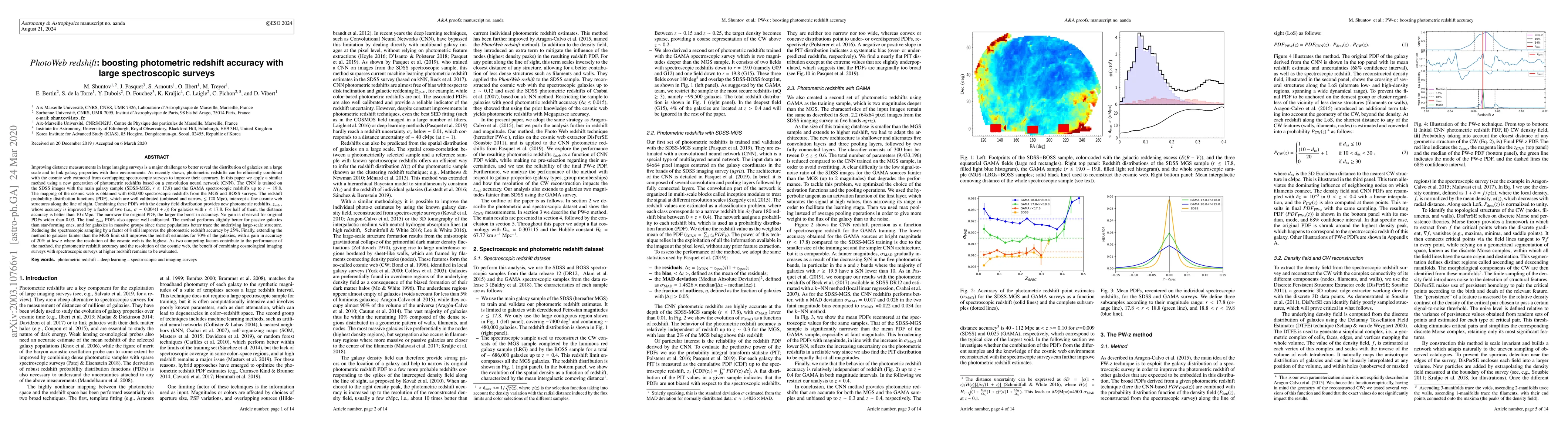 This work is novel because it uses machine learning algorithms to improve the accuracy of photometric redshifts, providing a new method for estimating galaxy distances.