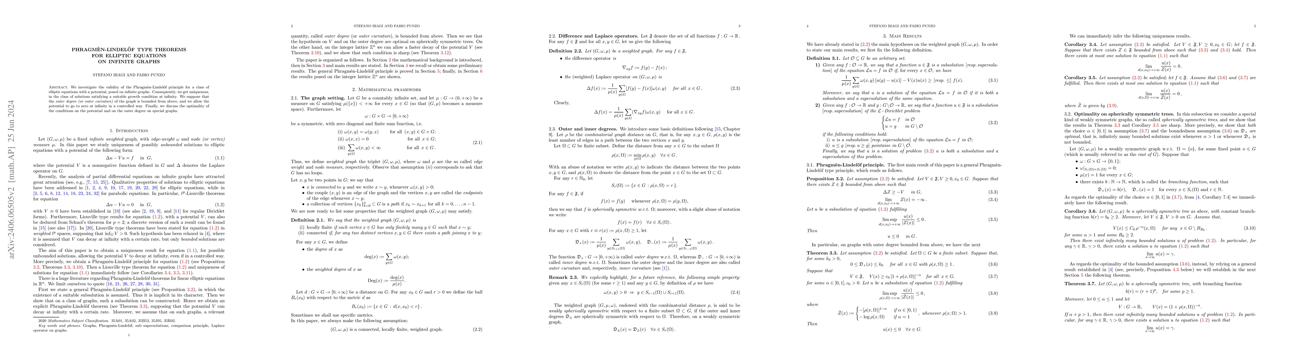 Two-line summary: This paper explores the Phragmèn-Lindelöf principle for elliptic equations with potential on infinite graphs, establishing uniqueness for solutions under specific growth conditions. It assumes a bounded outer degree and controlled potential decay, and discusses the optimality of these conditions on particular graph structures.