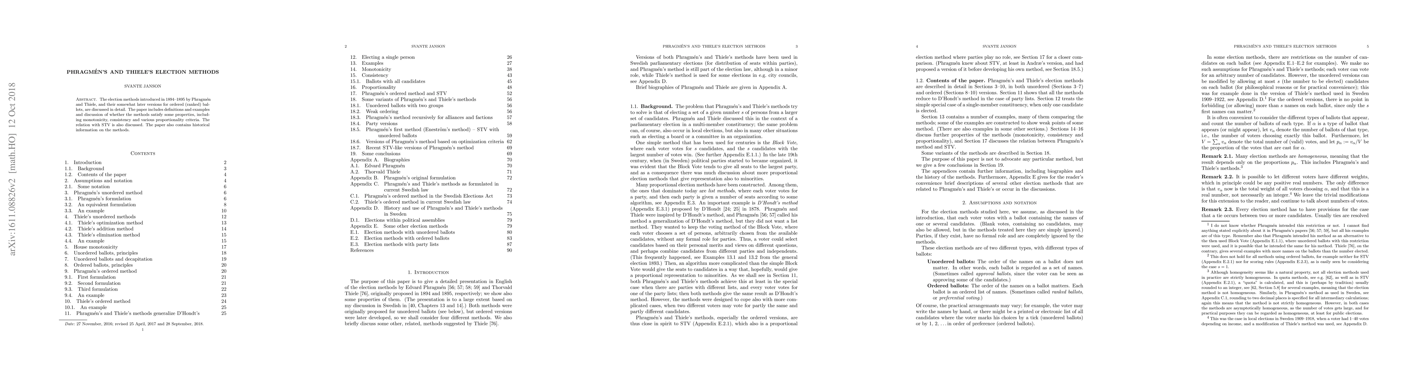 The election methods introduced in 1894--1895 by Phragm\'en and Thiele, and their somewhat later versions for ordered (ranked) ballots, are discussed in detail. The paper includes definitions and examples and discussion of whether the methods satisfy some properties, including monotonicity, consistency and various proportionality criteria. The relation with STV is also discussed. The paper also contains historical information on the methods.