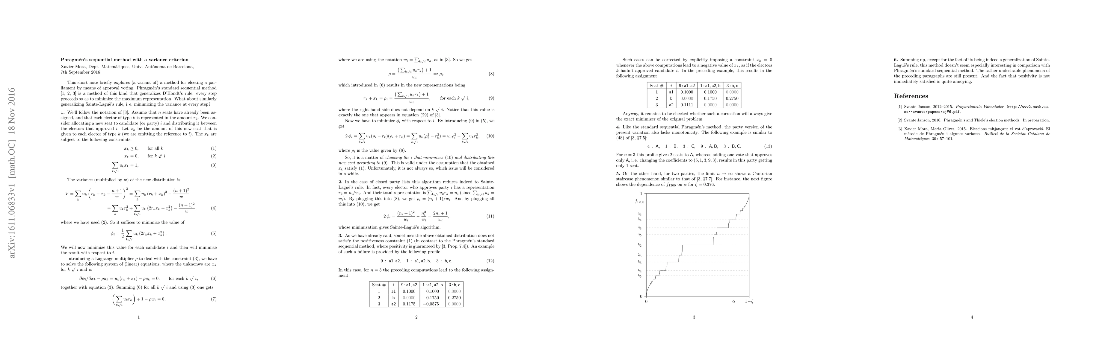 A variant of Phragm\'en's method for proportional representation via approval voting is briefly explored. Instead of D'Hondt's rule, this variant generalizes Sainte-Lagu\"e's rule.
