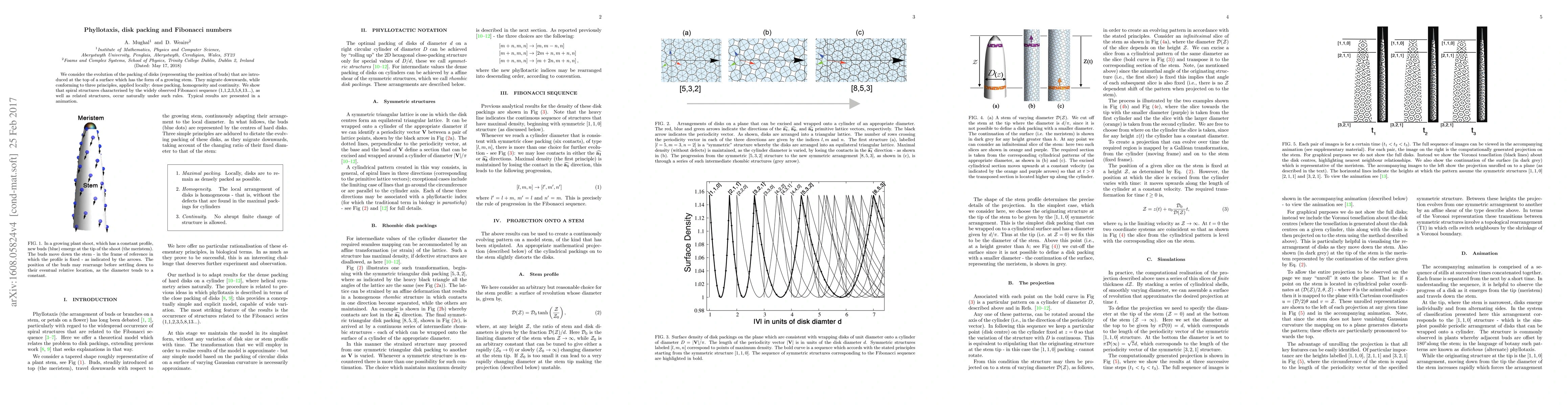 Researchers found that spiral structures, including those characterized by the Fibonacci sequence, occur naturally under specific rules for packing disks on a growing stem, demonstrating the connection between phyllotaxis and disk packing.