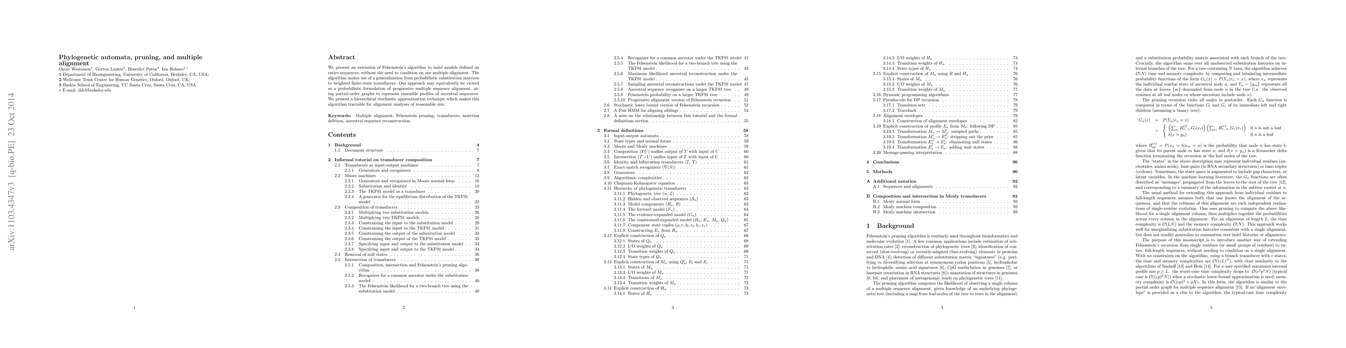 This paper extends Felsenstein's algorithm to handle indel models across entire sequences, employing weighted finite-state transducers instead of substitution matrices. It uses probabilistic progressive multiple sequence alignment with partial-order graphs and introduces a hierarchical stochastic approximation technique for practical alignment analysis.