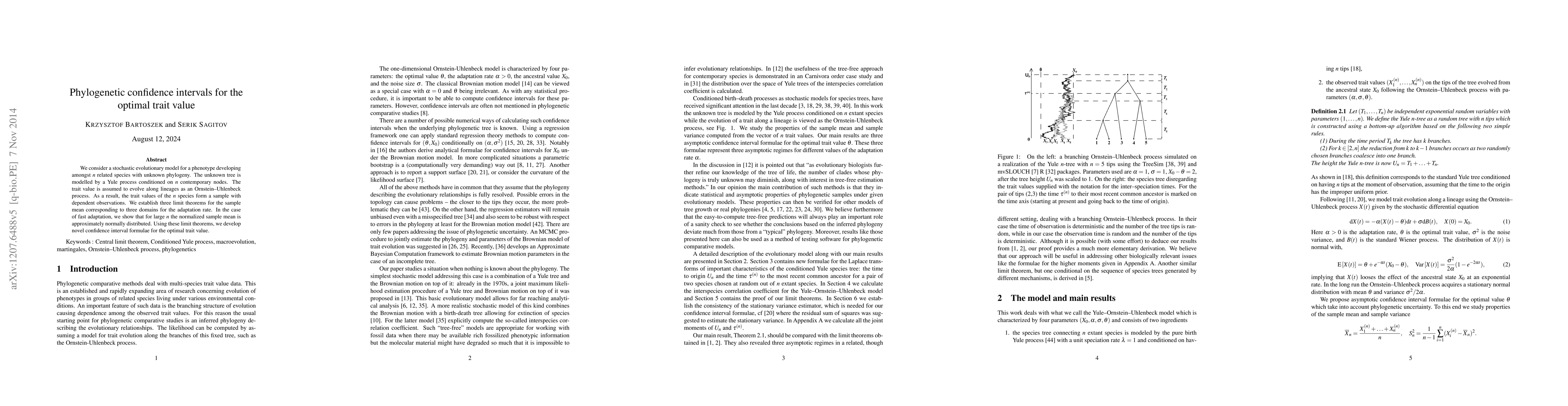 Researchers develop new confidence interval formulas for estimating optimal trait values in species with unknown phylogeny, leveraging stochastic evolutionary models and limit theorems for large sample sizes.