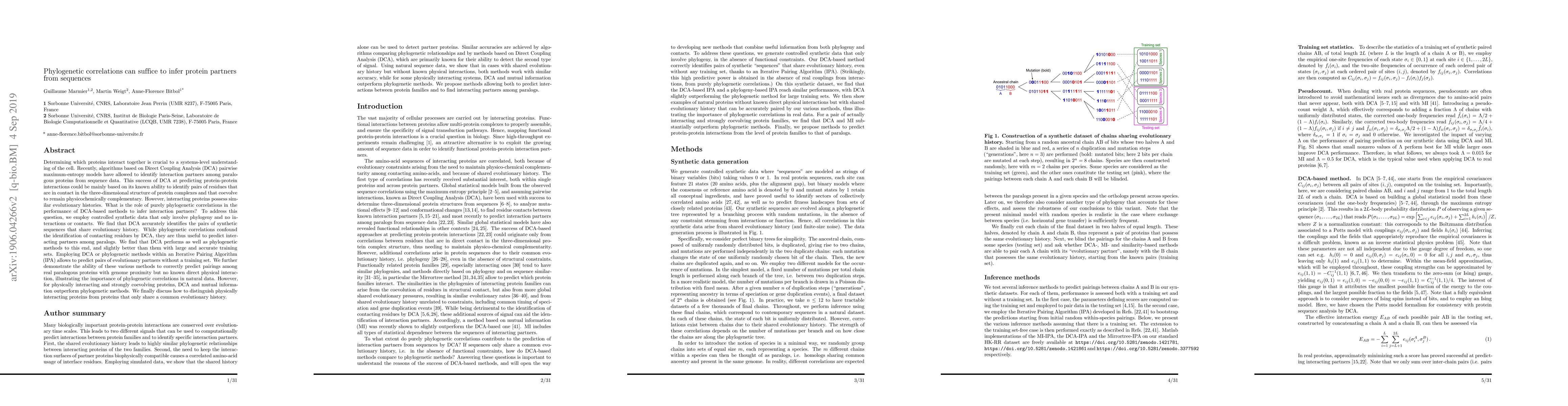 Determining which proteins interact together is crucial to a systems-level understanding of the cell. Recently, algorithms based on Direct Coupling Analysis (DCA) pairwise maximum-entropy models have allowed to identify interaction partners among paralogous proteins from sequence data. This success of DCA at predicting protein-protein interactions could be mainly based on its known ability to identify pairs of residues that are in contact in the three-dimensional structure of protein complexes and that coevolve to remain physicochemically complementary. However, interacting proteins possess similar evolutionary histories. What is the role of purely phylogenetic correlations in the performance of DCA-based methods to infer interaction partners? To address this question, we employ controlled synthetic data that only involve phylogeny and no interactions or contacts. We find that DCA accurately identifies the pairs of synthetic sequences that share evolutionary history. While phylogenetic correlations confound the identification of contacting residues by DCA, they are thus useful to predict interacting partners among paralogs. We find that DCA performs as well as phylogenetic methods to this end, and slightly better than them with large and accurate training sets. Employing DCA or phylogenetic methods within an Iterative Pairing Algorithm (IPA) allows to predict pairs of evolutionary partners without a training set. We demonstrate the ability of these various methods to correctly predict pairings among real paralogous proteins with genome proximity but no known physical interaction, illustrating the importance of phylogenetic correlations in natural data. However, for physically interacting and strongly coevolving proteins, DCA and mutual information outperform phylogenetic methods. We discuss how to distinguish physically interacting proteins from those only sharing evolutionary history.