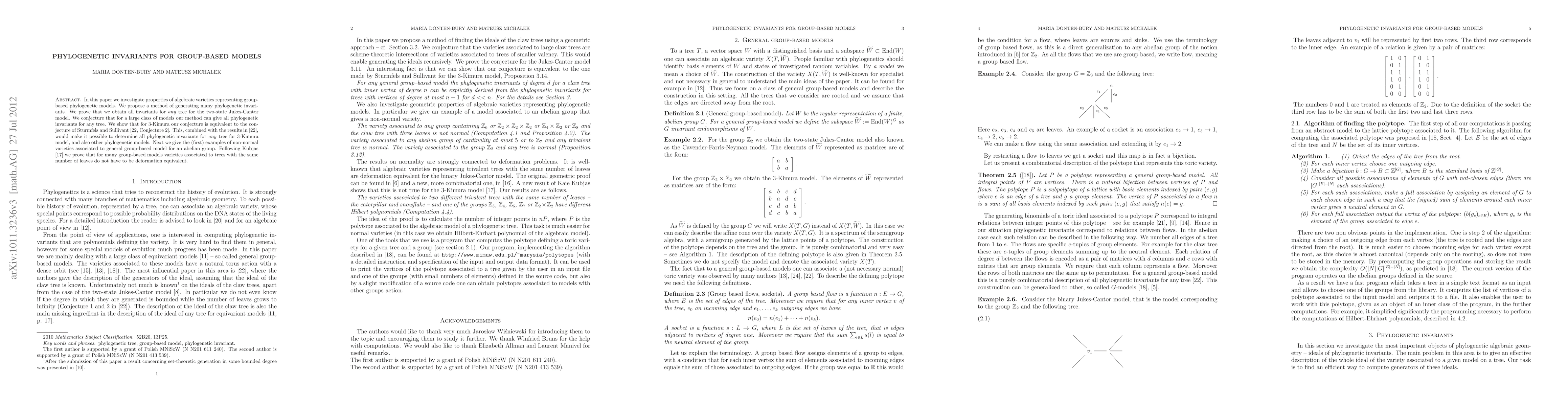 This paper explores algebraic varieties for group-based phylogenetic models, proposing a method to generate phylogenetic invariants, proving complete coverage for binary Jukes-Cantor trees, and conjecturing its applicability to other models like the 3-Kimura model. It also presents a non-normal general group-based model for an abelian group, illustrating the diversity of associated varieties.