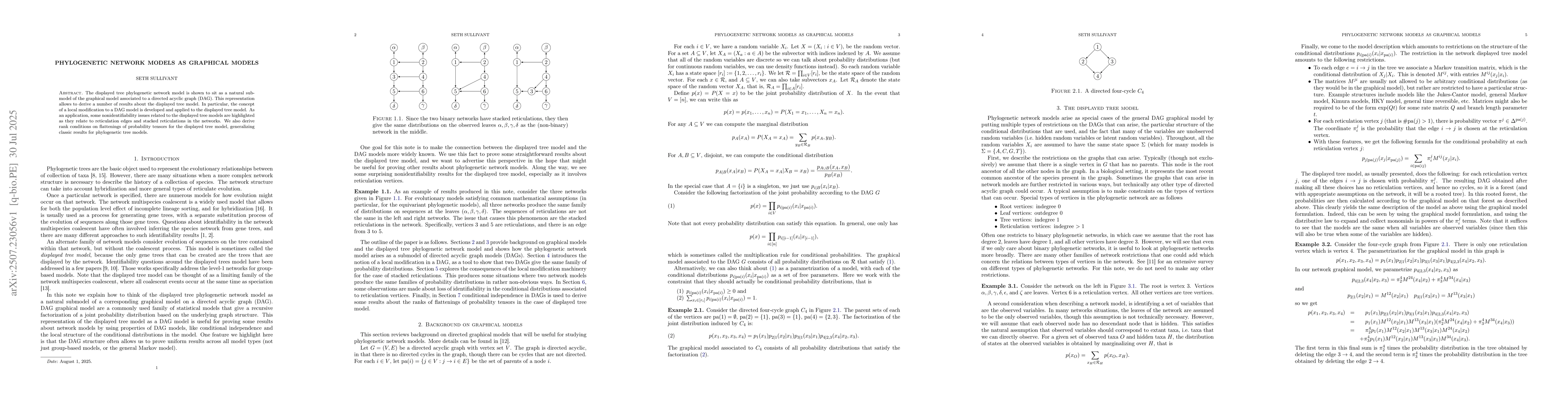 The displayed tree phylogenetic network model is shown to sit as a natural submodel of the graphical model associated to a directed acyclic graph (DAG). This representation allows to derive a number of results about the displayed tree model. In particular, the concept of a local modification to a DAG model is developed and applied to the displayed tree model. As an application, some nonidentifiability issues related to the displayed tree models are highlighted as they relate to reticulation edges and stacked reticulations in the networks. We also derive rank conditions on flattenings of probability tensors for the displayed tree model, generalizing classic results for phylogenetic tree models.