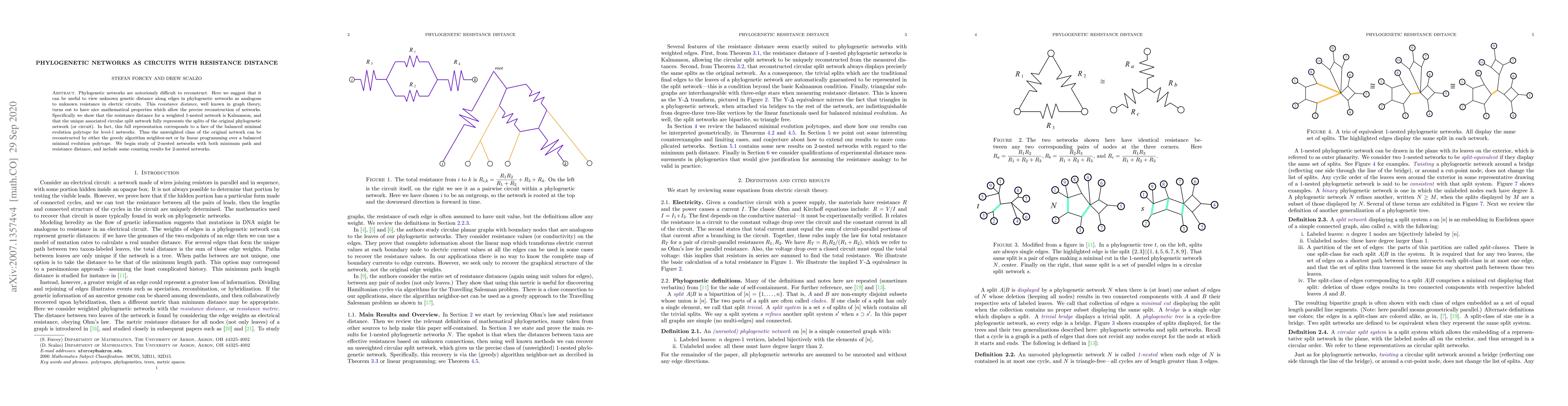 Phylogenetic networks are notoriously difficult to reconstruct. Here we suggest that it can be useful to view unknown genetic distance along edges in phylogenetic networks as analogous to unknown resistance in electric circuits. This resistance distance, well known in graph theory, turns out to have nice mathematical properties which allow the precise reconstruction of networks. Specifically we show that the resistance distance for a weighted 1-nested network is Kalmanson, and that the unique associated circular split network fully represents the splits of the original phylogenetic network (or circuit). In fact, this full representation corresponds to a face of the balanced minimal evolution polytope for level-1 networks. Thus the unweighted class of the original network can be reconstructed by either the greedy algorithm neighbor-net or by linear programming over a balanced minimal evolution polytope. We begin study of 2-nested networks with both minimum path and resistance distance, and include some counting results for 2-nested networks.