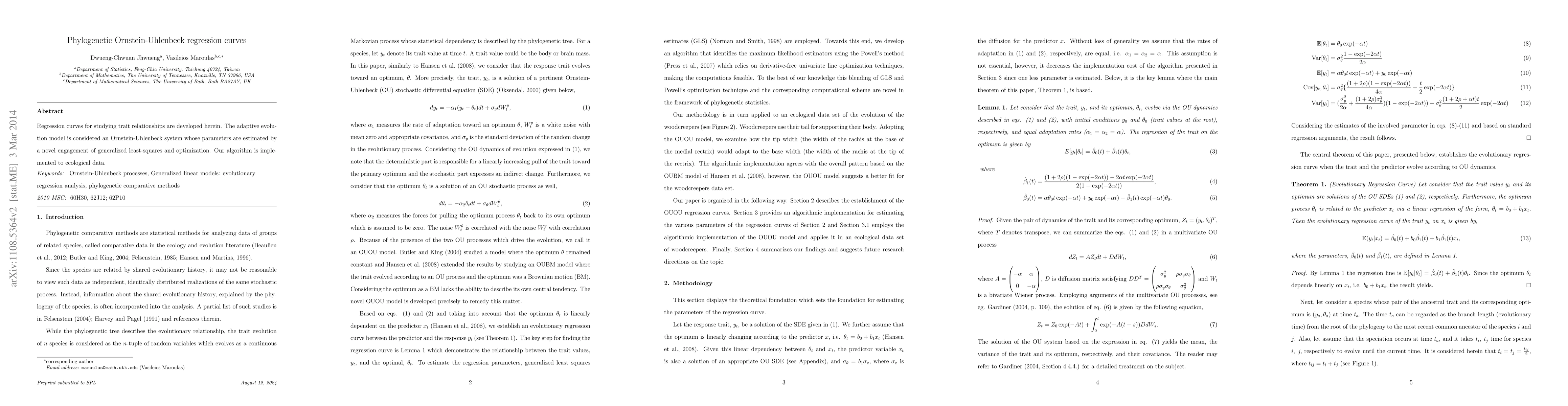 Regression curves for studying trait relationships are developed herein. The adaptive evolution model is considered an Ornstein-Uhlenbeck system whose parameters are estimated by a novel engagement of generalized least-squares and optimization. Our algorithm is implemented to ecological data.