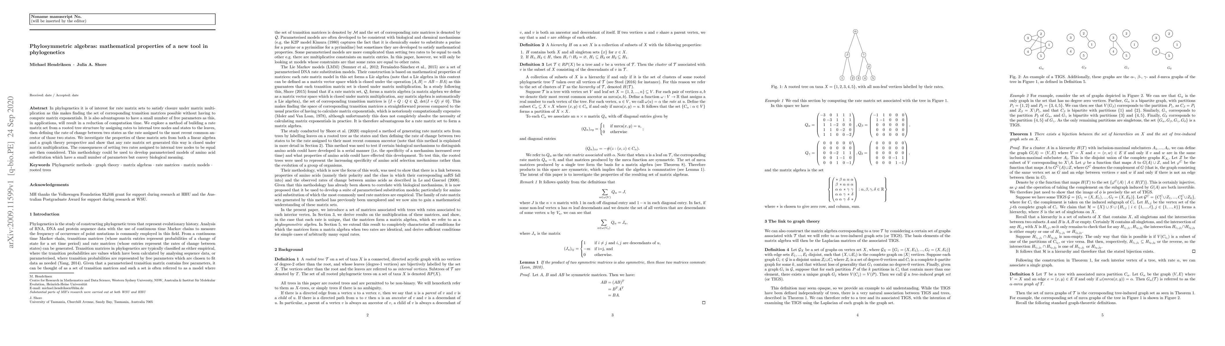 This paper introduces phylosymmetric algebras as a new tool in phylogenetics, demonstrating that rate matrix sets derived from rooted tree structures are closed under matrix multiplication, thus simplifying computations. The study also explores the implications of equal rates on internal nodes, suggesting potential for developing efficient, biologically meaningful substitution models.