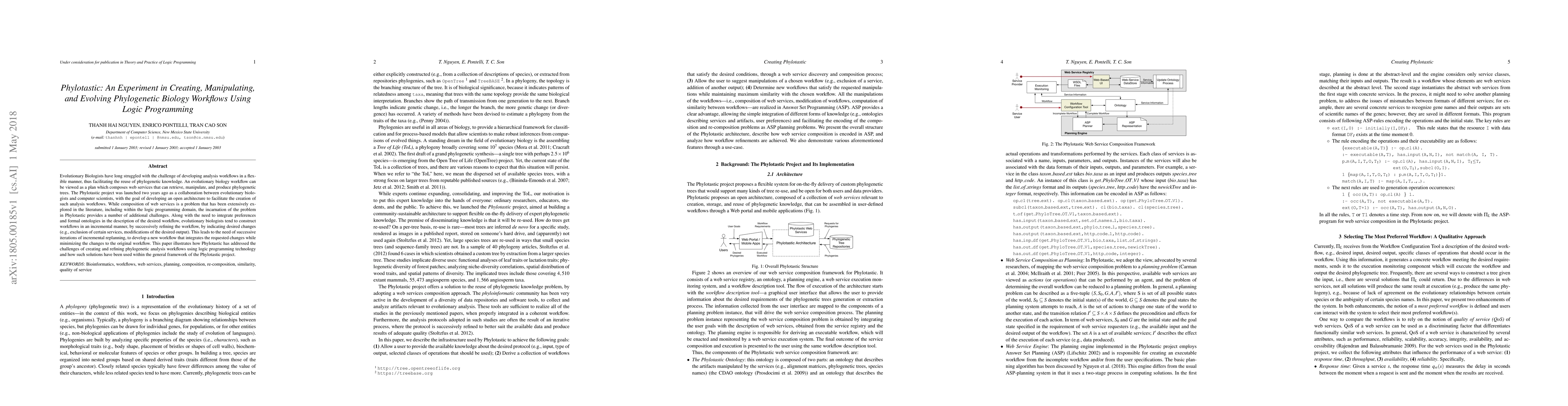 Evolutionary Biologists have long struggled with the challenge of developing analysis workflows in a flexible manner, thus facilitating the reuse of phylogenetic knowledge. An evolutionary biology workflow can be viewed as a plan which composes web services that can retrieve, manipulate, and produce phylogenetic trees. The Phylotastic project was launched two years ago as a collaboration between evolutionary biologists and computer scientists, with the goal of developing an open architecture to facilitate the creation of such analysis workflows. While composition of web services is a problem that has been extensively explored in the literature, including within the logic programming domain, the incarnation of the problem in Phylotastic provides a number of additional challenges. Along with the need to integrate preferences and formal ontologies in the description of the desired workflow, evolutionary biologists tend to construct workflows in an incremental manner, by successively refining the workflow, by indicating desired changes (e.g., exclusion of certain services, modifications of the desired output). This leads to the need of successive iterations of incremental replanning, to develop a new workflow that integrates the requested changes while minimizing the changes to the original workflow. This paper illustrates how Phylotastic has addressed the challenges of creating and refining phylogenetic analysis workflows using logic programming technology and how such solutions have been used within the general framework of the Phylotastic project. Under consideration in Theory and Practice of Logic Programming (TPLP).