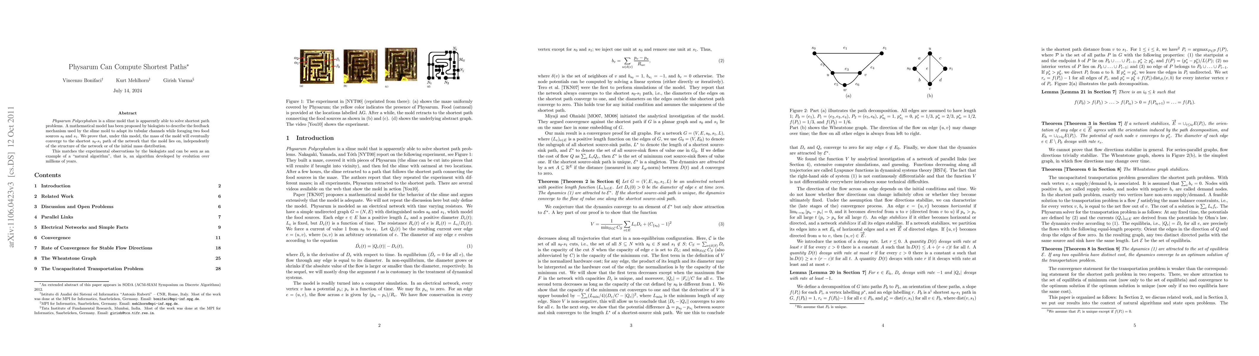 A slime mold named Physarum Polycephalum can solve shortest path problems through its adaptive network, matching experimental observations and demonstrating a natural algorithm.