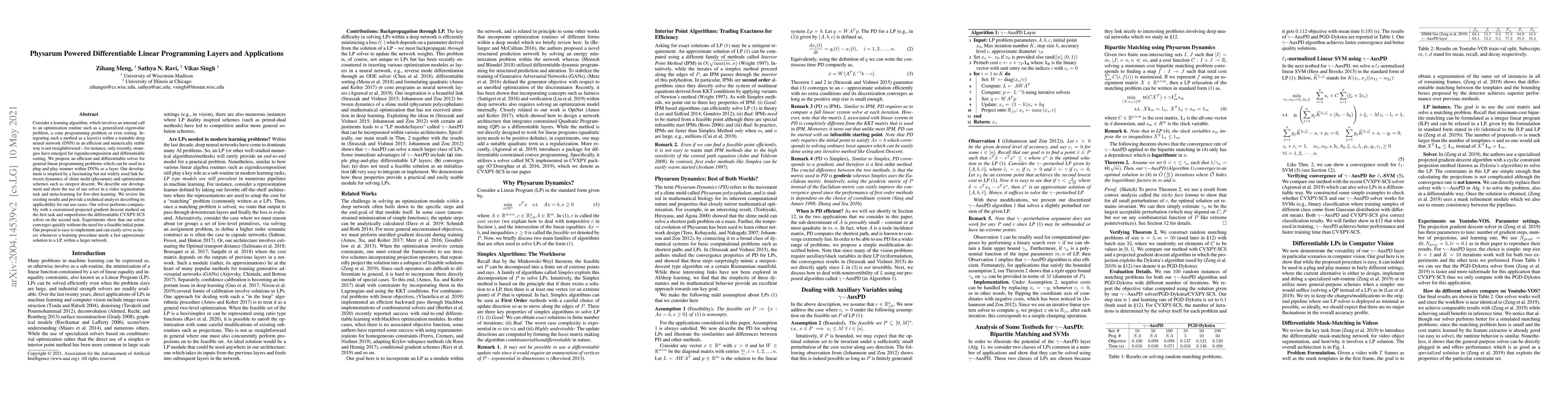 A new, efficient method for solving linear programming problems is proposed, inspired by the dynamics of slime mold, which can be used in deep neural networks as a differentiable layer, achieving comparable performance to customized gradient descent methods.