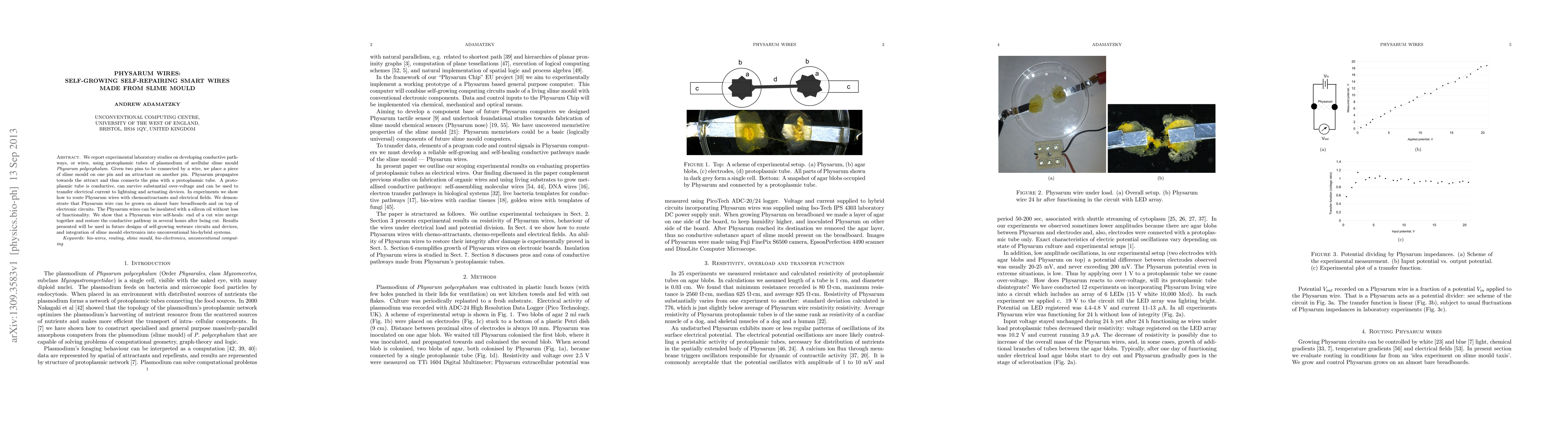 The development of conductive pathways or 'Physarum wires' using slime mould protoplasmic tubes for use in electrical circuits, including lightning and actuating devices.