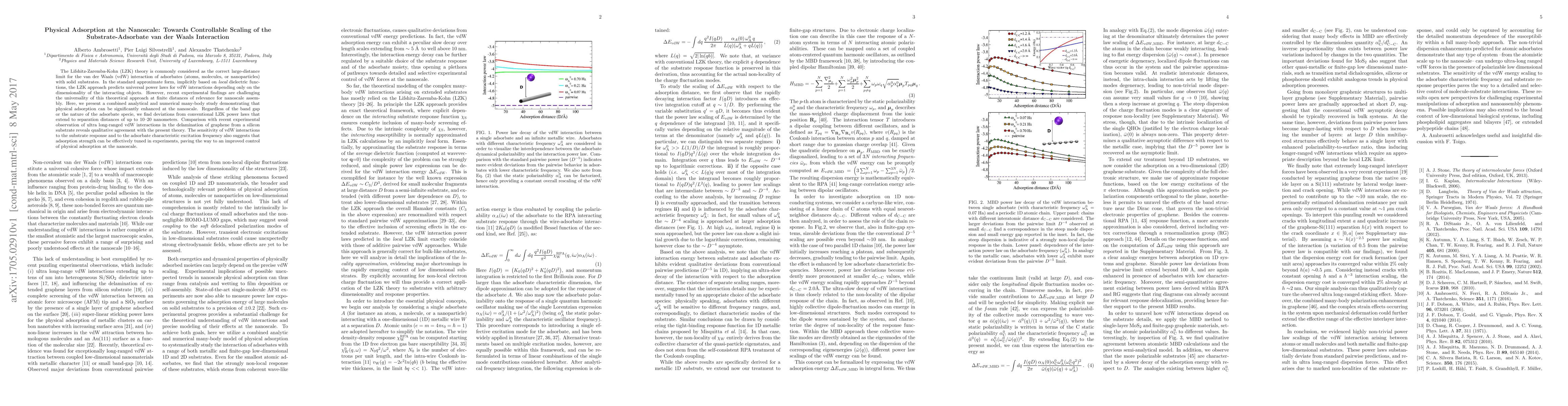 This paper explores the deviations from Lifshitz-Zaremba-Kohn (LZK) theory predictions for nanoscale van der Waals interactions, demonstrating significant enhancements in physical adsorption through combined analytical and numerical studies. The findings suggest that adsorption strength can be tuned, offering a pathway to better control of nanoscale assembly.