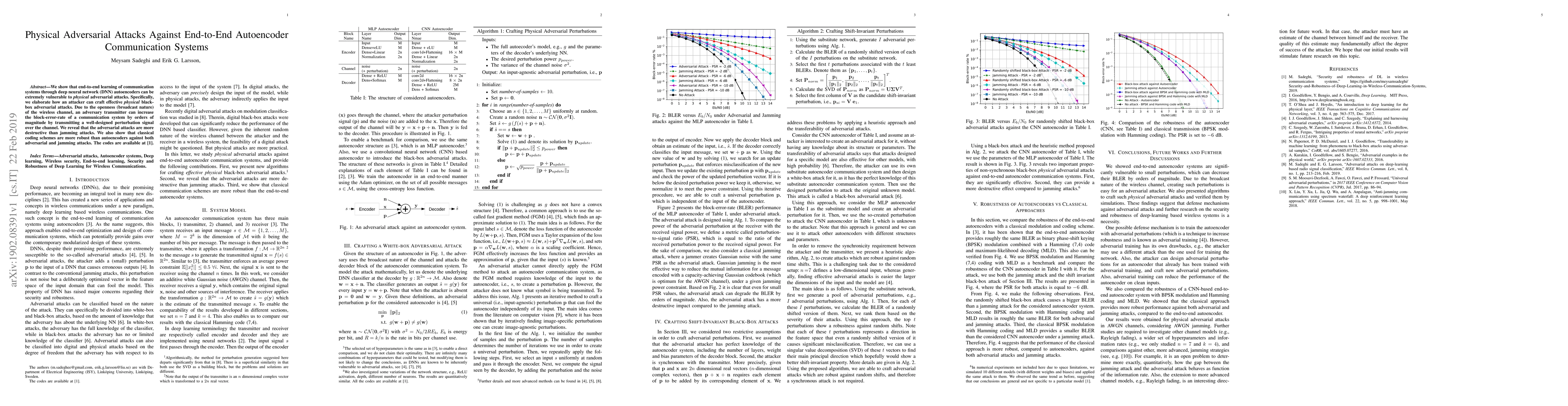 The paper introduces methods for crafting physical adversarial attacks against end-to-end autoencoder communication systems and verifies their effectiveness through simulations.