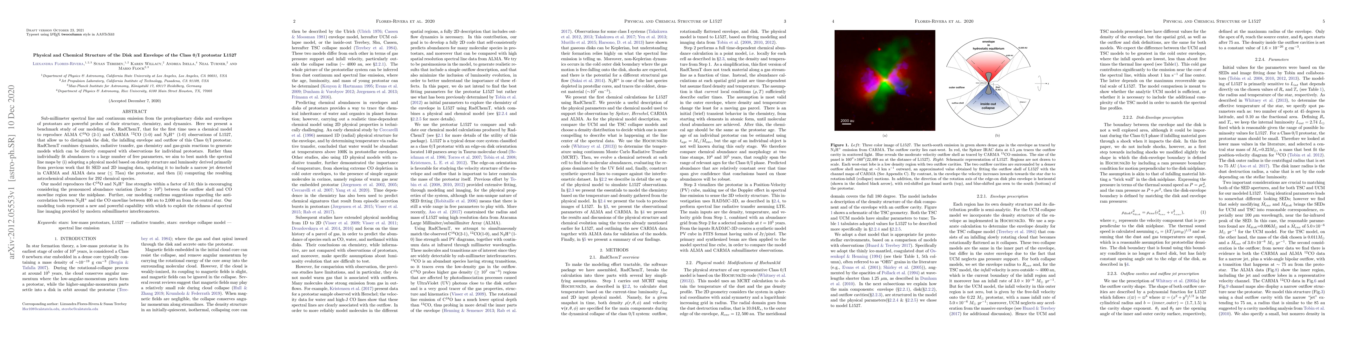 This study employs the RadChemT modeling code to analyze ALMA and CARMA observations of the protostar L1527, distinguishing its disk, envelope, and outflow. The model successfully reproduces observed spectral line strengths and confirms the anti-correlation between N$_{2}$H$^{+}$ and the CO snowline, showcasing a new tool for interpreting protostellar structures.