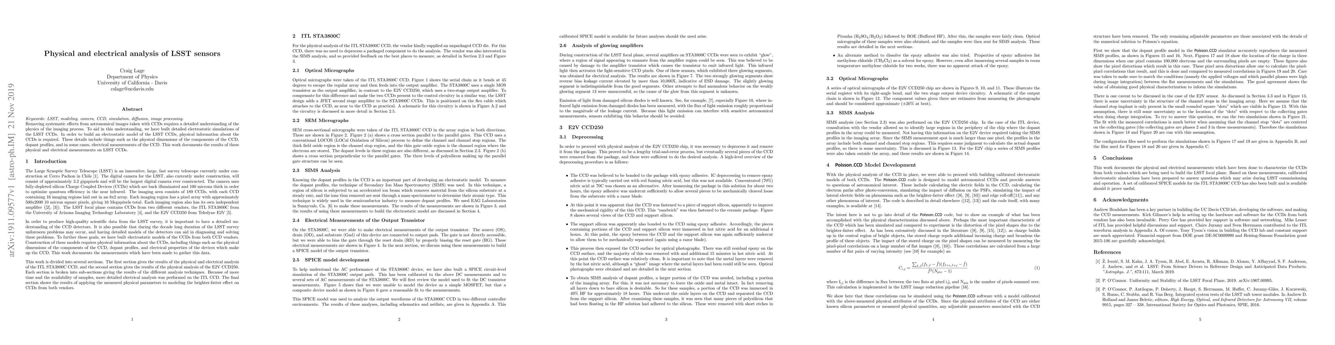 This paper presents detailed physical and electrical measurements of LSST CCD sensors, including dimensions, dopant profiles, and electrical characteristics, to support the development of electrostatic simulations aimed at removing systematic effects from astronomical images. The results enhance the understanding of the imaging process for improved image quality.