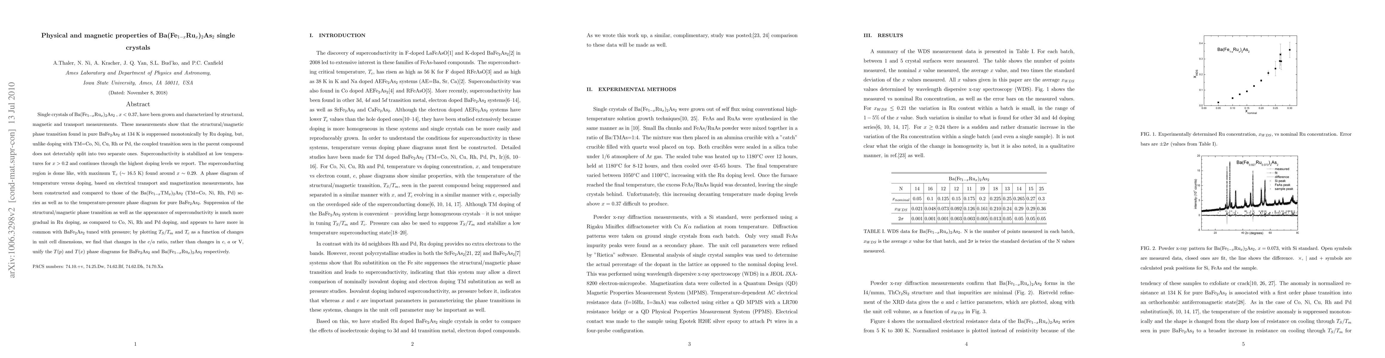 This study investigates the physical and magnetic properties of Ba(Fe$_{1-x}$Ru$_x$)$_2$As$_2$ single crystals, finding that Ru doping suppresses the structural/magnetic phase transition in BaFe$_2$As$_2$ more gradually than TM doping (TM=Co, Ni, Rh, Pd). Superconductivity emerges at low temperatures for $x>0.2$, peaking at $x\sim 0.29$ with $T_c \sim 16.5$ K.