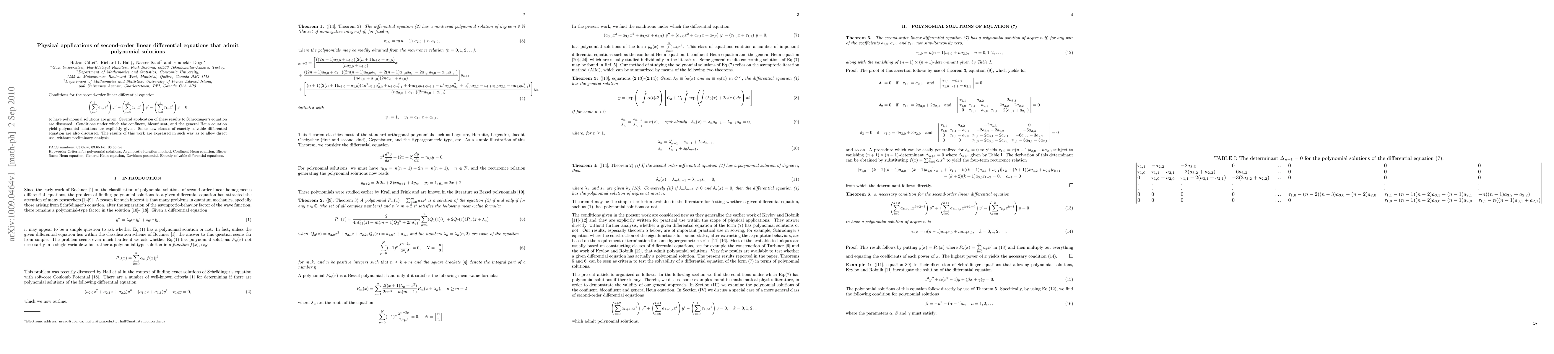 This paper identifies conditions under which second-order linear differential equations with polynomial coefficients yield polynomial solutions, and applies these findings to Schrödinger's equation, including confluent, biconfluent, and general Heun equations. New classes of exactly solvable differential equations are also introduced.