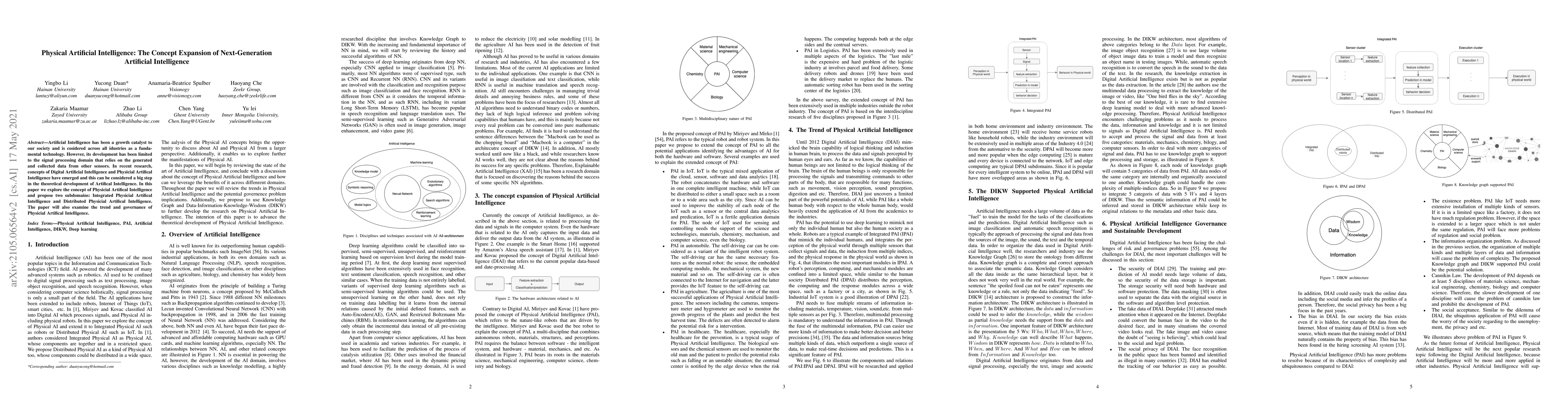 Artificial Intelligence has been a growth catalyst to our society and is cosidered across all idustries as a fundamental technology. However, its development has been limited to the signal processing domain that relies on the generated and collected data from other sensors. In recent research, concepts of Digital Artificial Intelligence and Physicial Artifical Intelligence have emerged and this can be considered a big step in the theoretical development of Artifical Intelligence. In this paper we explore the concept of Physicial Artifical Intelligence and propose two subdomains: Integrated Physicial Artifical Intelligence and Distributed Physicial Artifical Intelligence. The paper will also examine the trend and governance of Physicial Artifical Intelligence.