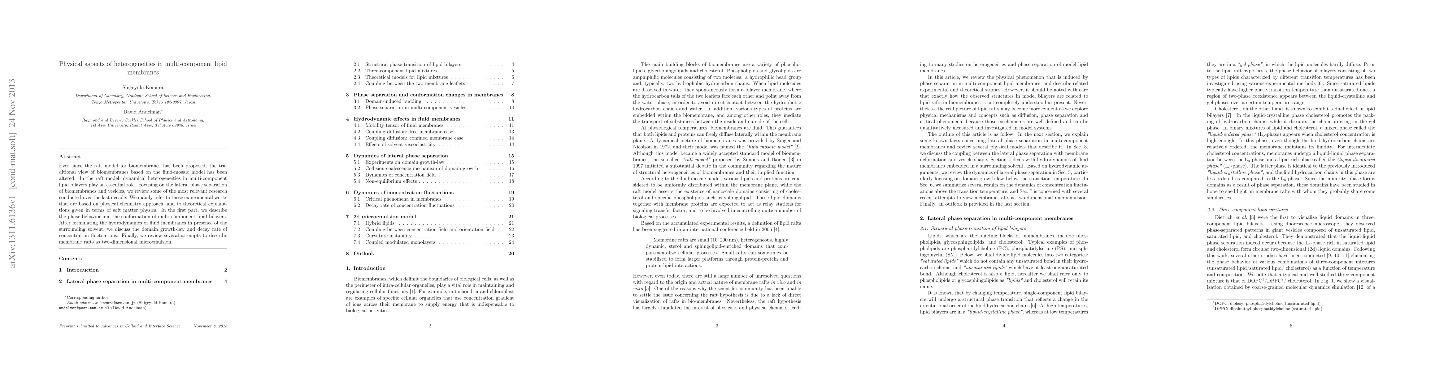 This paper reviews the physical chemistry and soft matter physics of dynamical heterogeneities in multi-component lipid membranes, focusing on lateral phase separation and the raft model. It discusses phase behavior, hydrodynamics, domain growth, and concentration fluctuations, and explores theoretical models of membrane rafts as two-dimensional microemulsions.