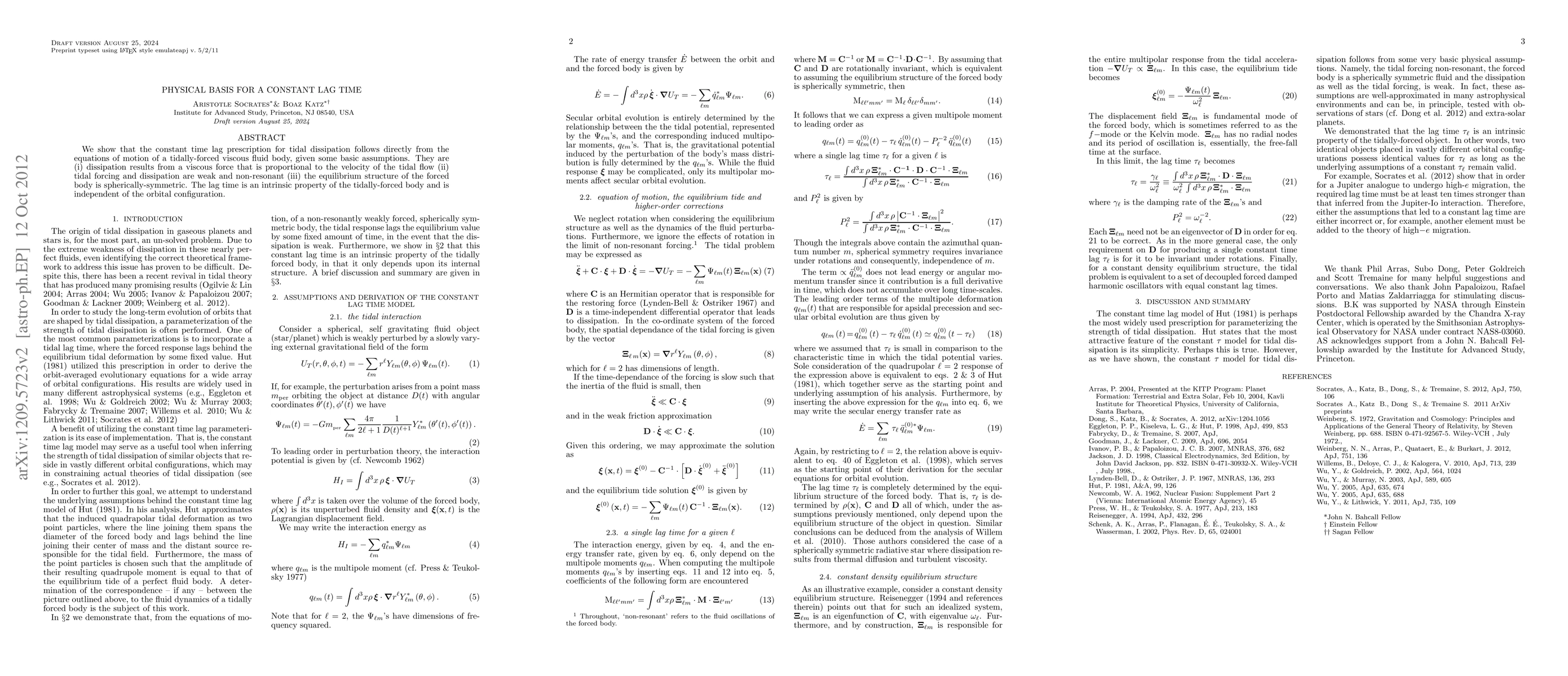 We show that the constant time lag prescription for tidal dissipation follows directly from the equations of motion of a tidally-forced viscous fluid body, given some basic assumptions. They are (i) dissipation results from a viscous force that is proportional to the velocity of the tidal flow (ii) tidal forcing and dissipation are weak and non-resonant (iii) the equilibrium structure of the forced body is spherically-symmetric. The lag time is an intrinsic property of the tidally-forced body and is independent of the orbital configuration.