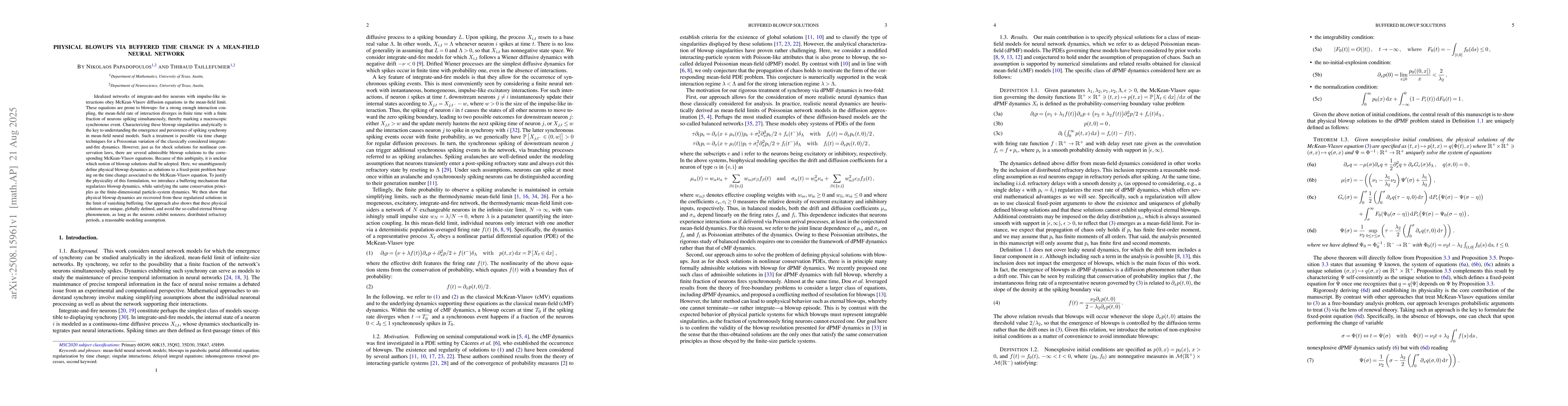 Idealized networks of integrate-and-fire neurons with impulse-like interactions obey McKean-Vlasov diffusion equations in the mean-field limit. These equations are prone to blowups: for a strong enough interaction coupling, the mean-field rate of interaction diverges in finite time with a finite fraction of neurons spiking simultaneously, thereby marking a macroscopic synchronous event. Characterizing these blowup singularities analytically is the key to understanding the emergence and persistence of spiking synchrony in mean-field neural models. Such a treatment is possible via time change techniques for a Poissonian variation of the classically considered integrate-and-fire dynamics. However, just as for shock solutions for nonlinear conservation laws, there are several admissible blowup solutions to the corresponding McKean-Vlasov equations. Because of this ambiguity, it is unclear which notion of blowup solutions shall be adopted. Here, we unambiguously define physical blowup dynamics as solutions to a fixed-point problem bearing on the time change associated to the McKean-Vlasov equation. To justify the physicality of this formulation, we introduce a buffering mechanism that regularizes blowup dynamics, while satisfying the same conservation principles as the finite-dimensional particle-system dynamics. We then show that physical blowup dynamics are recovered from these regularized solutions in the limit of vanishing buffering. Our approach also shows that these physical solutions are unique, globally defined, and avoid the so-called eternal blowup phenomenon, as long as the neurons exhibit nonzero, distributed refractory periods, a reasonable modeling assumption.