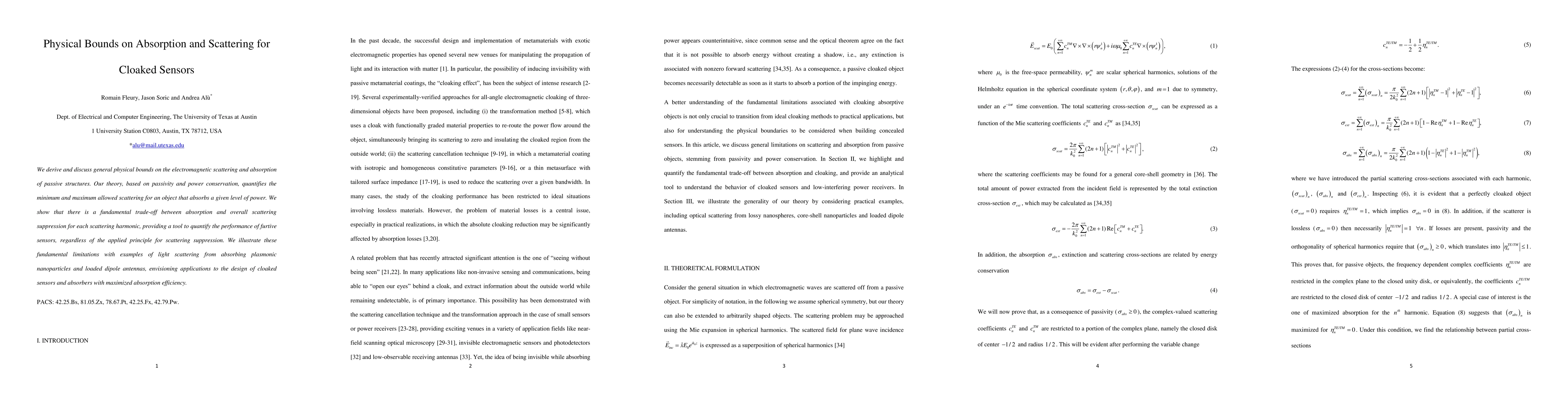 This paper establishes theoretical limits on electromagnetic absorption and scattering for passive structures, revealing a fundamental trade-off between absorption and scattering suppression. It provides insights for designing cloaked sensors and absorbers with optimized performance.