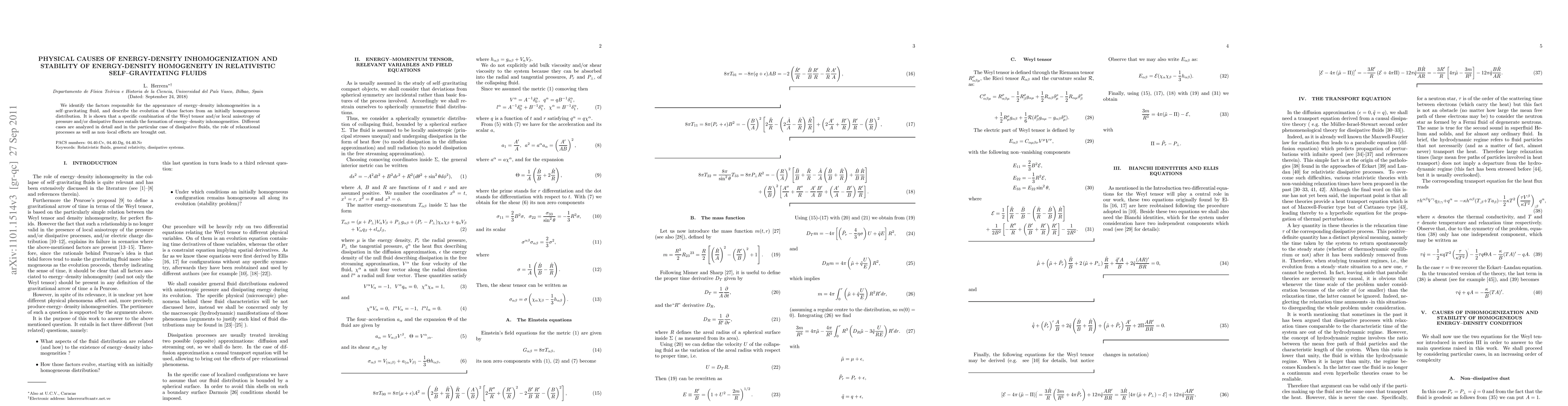 This paper investigates how energy-density inhomogeneities form and evolve in self-gravitating fluids, revealing a connection to the Weyl tensor, local anisotropy of pressure, and dissipative fluxes.