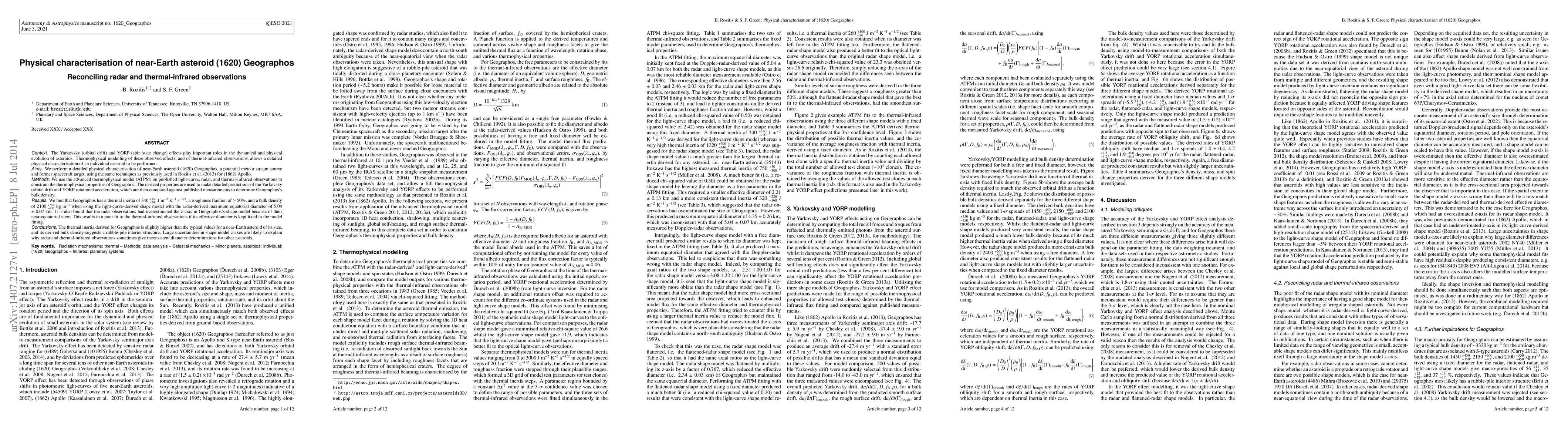 This study characterizes the near-Earth asteroid (1620) Geographos using thermophysical modelling of radar and thermal-infrared observations, finding a thermal inertia of 340 ± 140/-100 J m-2 K-1 s-1/2 and a bulk density of 2100 ± 550/-450 kg m-3, indicating a rubble-pile structure. Radar observations overestimated the asteroid's z-axis, causing inconsistencies with thermal-infrared data.