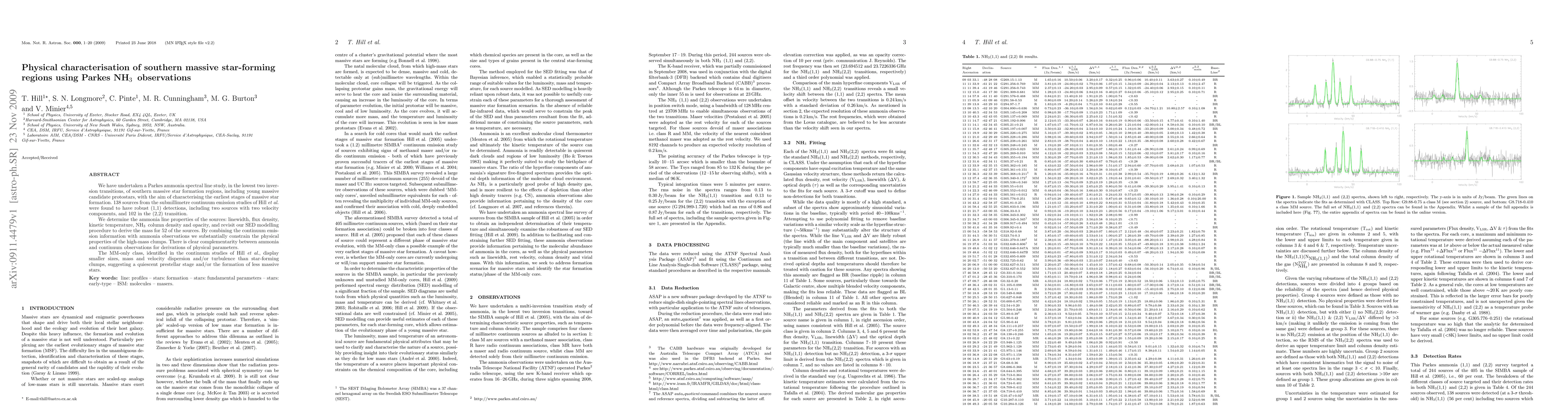 This paper uses Parkes ammonia spectral line observations to characterize the physical properties of southern massive star-forming regions, finding robust detections in 138 sources. The study combines ammonia and continuum emission data to constrain the physical properties of high-mass clumps, revealing differences between quiescent prestellar stages and active star-forming clumps.