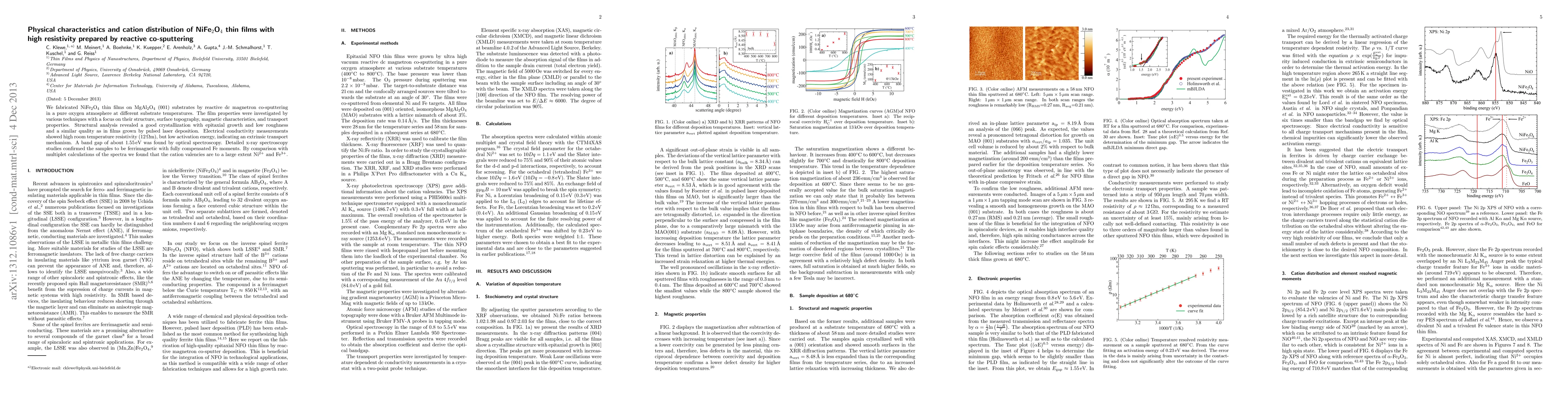 Researchers created NiFe2O4 thin films with high resistivity using reactive co-sputtering, revealing a ferrimagnetic structure with Ni2+ and Fe3+ cations and a band gap of 1.55 eV.