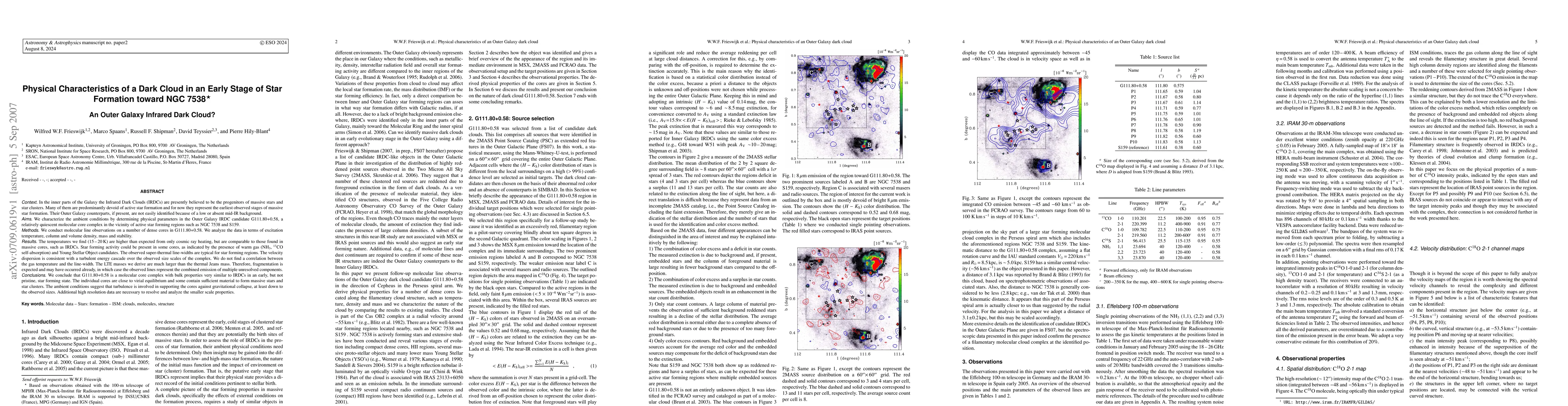 In the inner parts of the Galaxy the Infrared Dark Clouds (IRDCs) are presently believed to be the progenitors of massive stars and star clusters. Many of them are predominantly devoid of active star formation and for now they represent the earliest observed stages of massive star formation. Their Outer Galaxy counterparts, if present, are not easily identified because of a low or absent mid-IR background. We characterize the ambient conditions in the Outer Galaxy IRDC candidate G111.80+0.58, a relatively quiescent molecular core complex in the vicinity of NGC7538. We conduct molecular line observations on a number of dense cores and analyze the data in terms of excitation temperature, column and volume density, mass and stability. The temperatures (15-20K) are higher than expected from only cosmic ray heating, but comparable to those found in massive cores. Star forming activity could be present in some cores, as indicated by the presence of warm gas and YSO candidates. The observed super-thermal line-widths are typical for star forming regions. The velocity dispersion is consistent with a turbulent energy cascade over the observed size scales. We do not find a correlation between the gas temperature and the line-width. The LTE masses we find are much larger than the thermal Jeans mass and fragmentation is expected. In that case the observed lines represent the combined emission of multiple unresolved components. We conclude that G111.80+0.58 is a molecular core complex with bulk properties very similar to IRDCs in an early, but not pristine, star forming state. The individual cores are close to virial equilibrium and some contain sufficient material to form massive stars and star clusters. The ambient conditions suggest that turbulence is involved in supporting the cores against gravitational collapse.