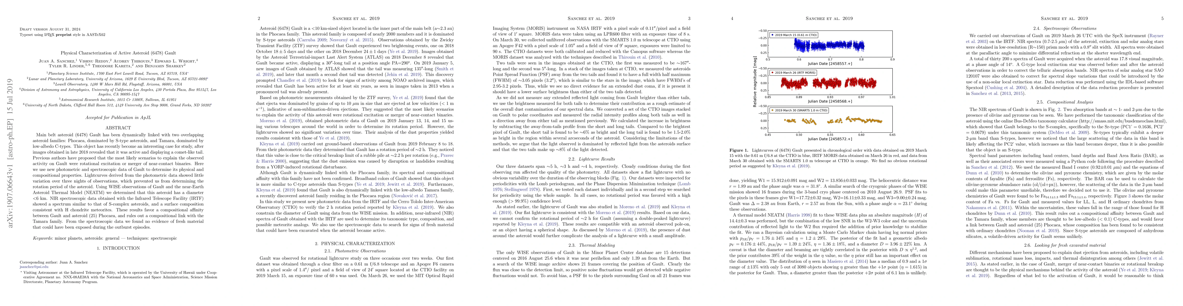 This study characterizes the active asteroid (6478) Gault, revealing it has a diameter less than 6 km and a composition similar to S-complex asteroids, consistent with H chondrite meteorites. The lack of fresh material suggests the recent activity was not due to surface exposure.