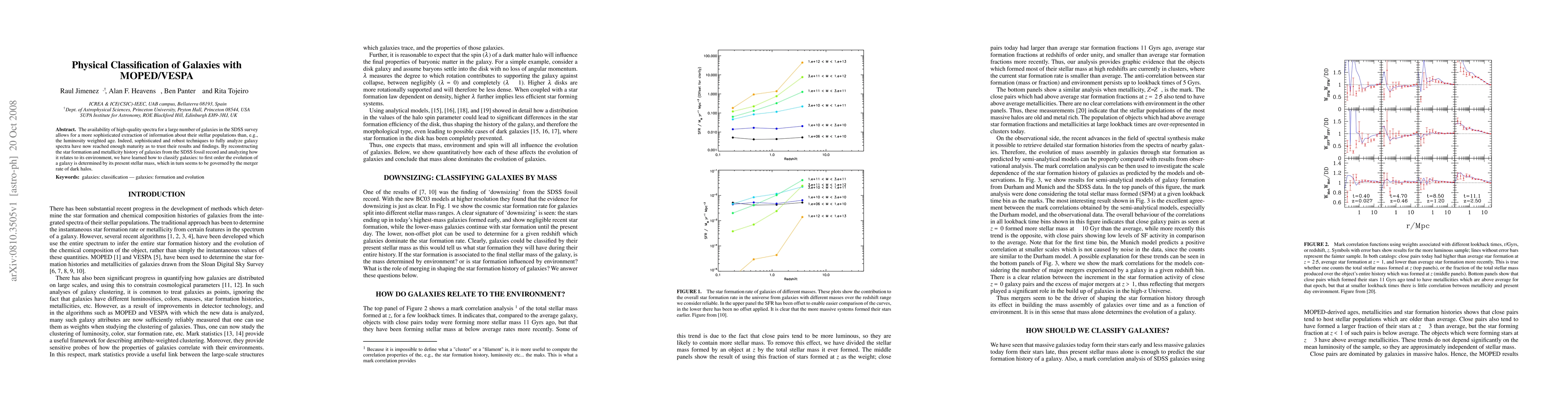This paper uses galaxy spectra to classify galaxies based on their stellar mass and merger rate, suggesting that a galaxy's evolution is primarily determined by its current mass and dark halo activity.